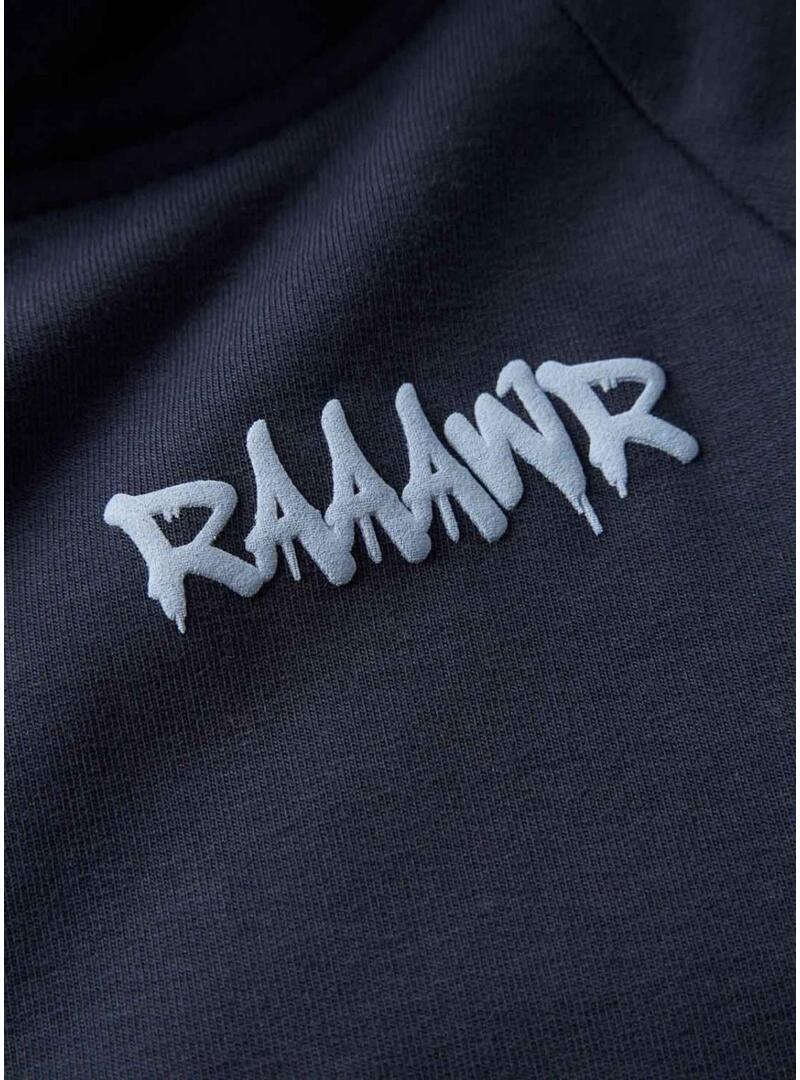 Felpa Name It. Colore blu scuro. Cappuccio. Manica lunga. Polsini e fondo elasticizzati. Dettaglio stampato sul petto. Contrasto blu chiaro sui lati. Design di dinosauro in rilievo sulla schiena e sul cappuccio. Fondo arrotondato.
