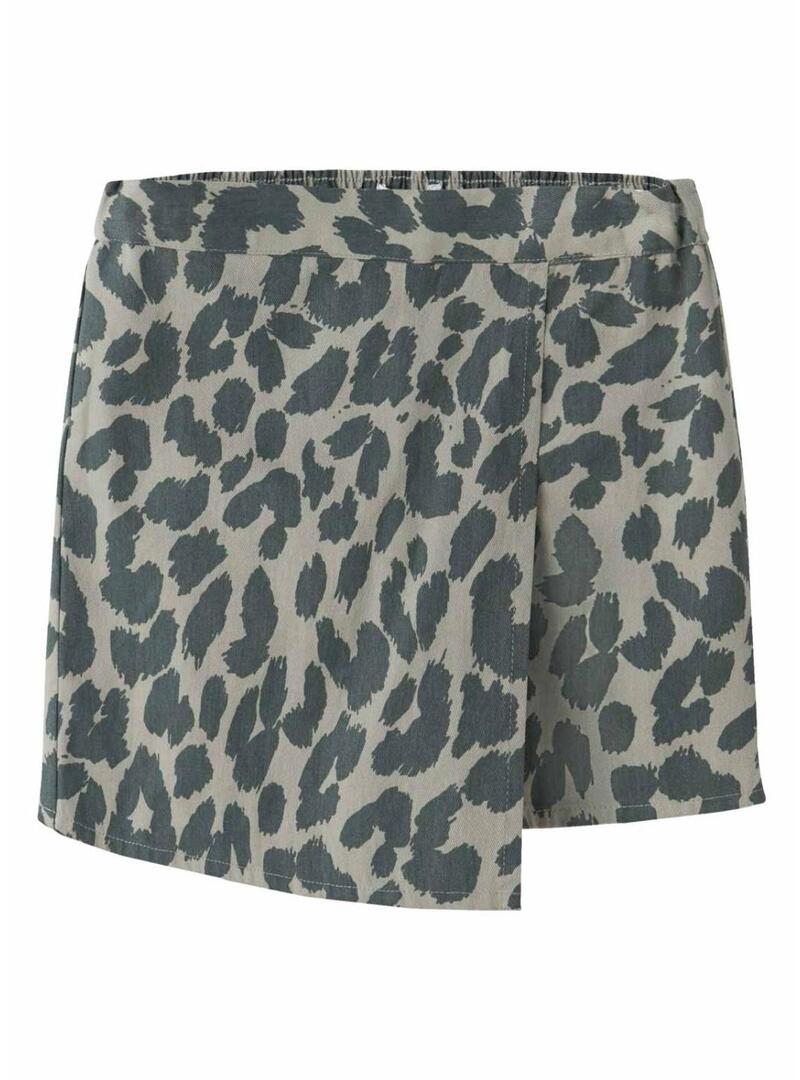 Pantaloni corti Name It. Stampa animalier nei toni grigio e nero. Vita elastica. Design incrociato nella parte anteriore che crea un effetto gonna. Taglio comodo. Stile moderno e versatile. Un capo perfetto per outfit estivi con un tocco di tendenza.