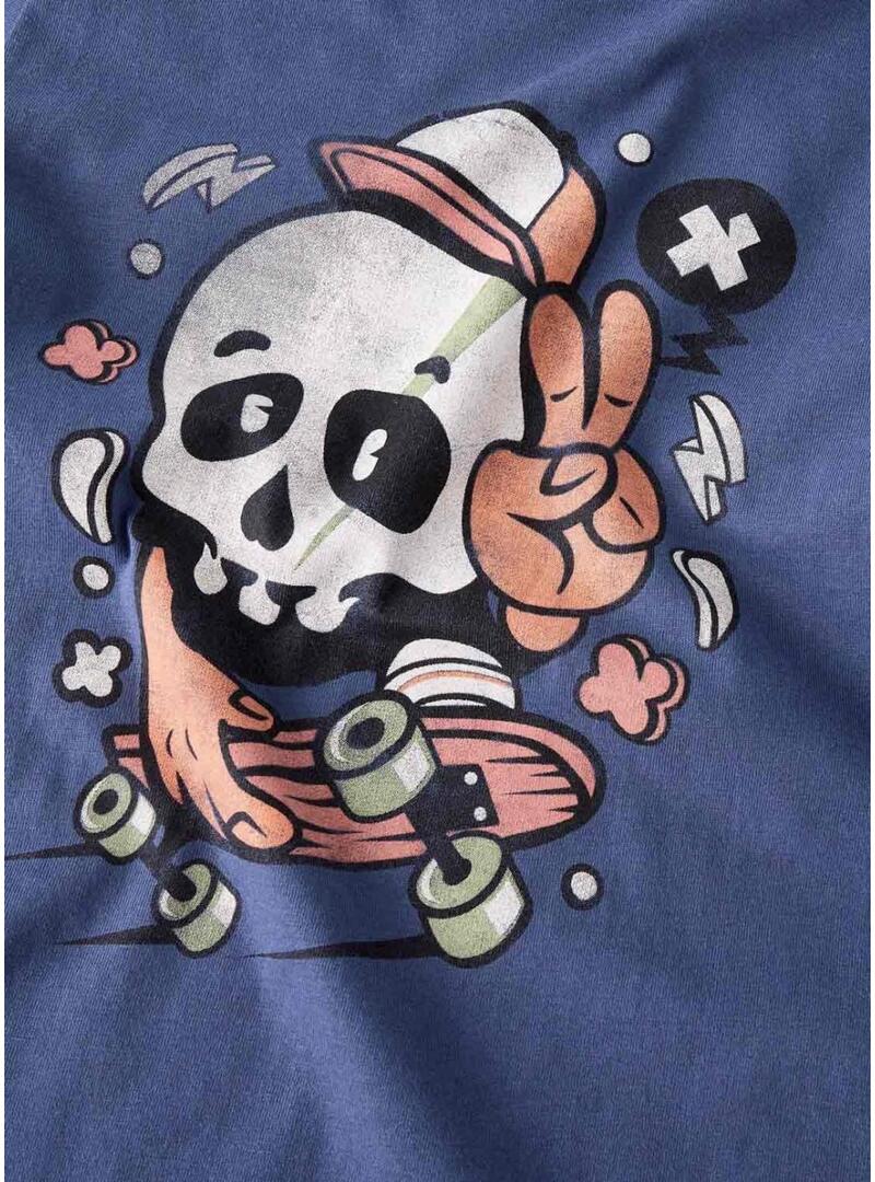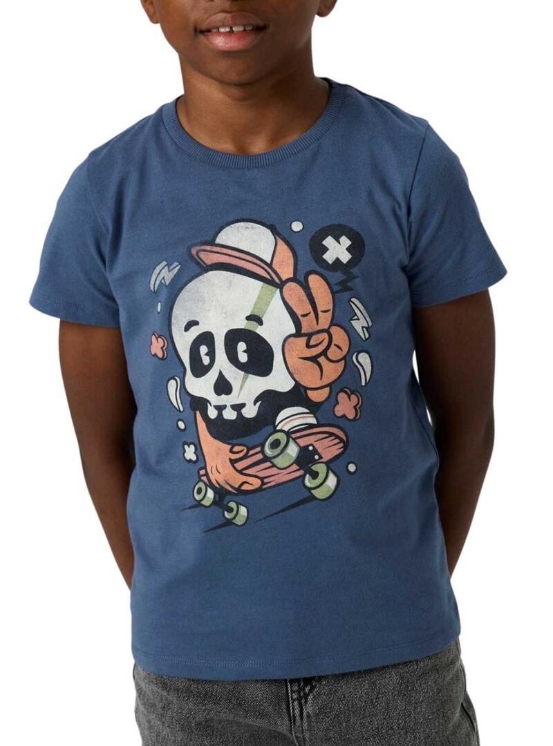 Maglietta Name It con stampa di teschio skate blu per bambino.