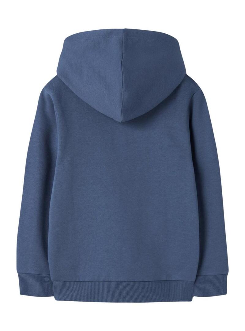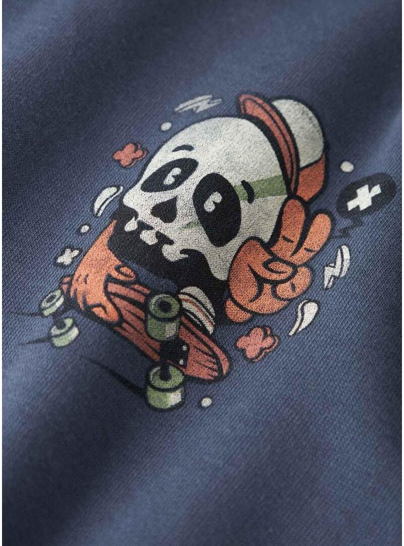 Felpa Name It. Colore blu. Cappuccio. Manica lunga. Tasca canguro anteriore. Stampa piccola sul petto con design di teschio su skateboard. Polsini e fondo a costine. Taglio comodo. Stile casual.