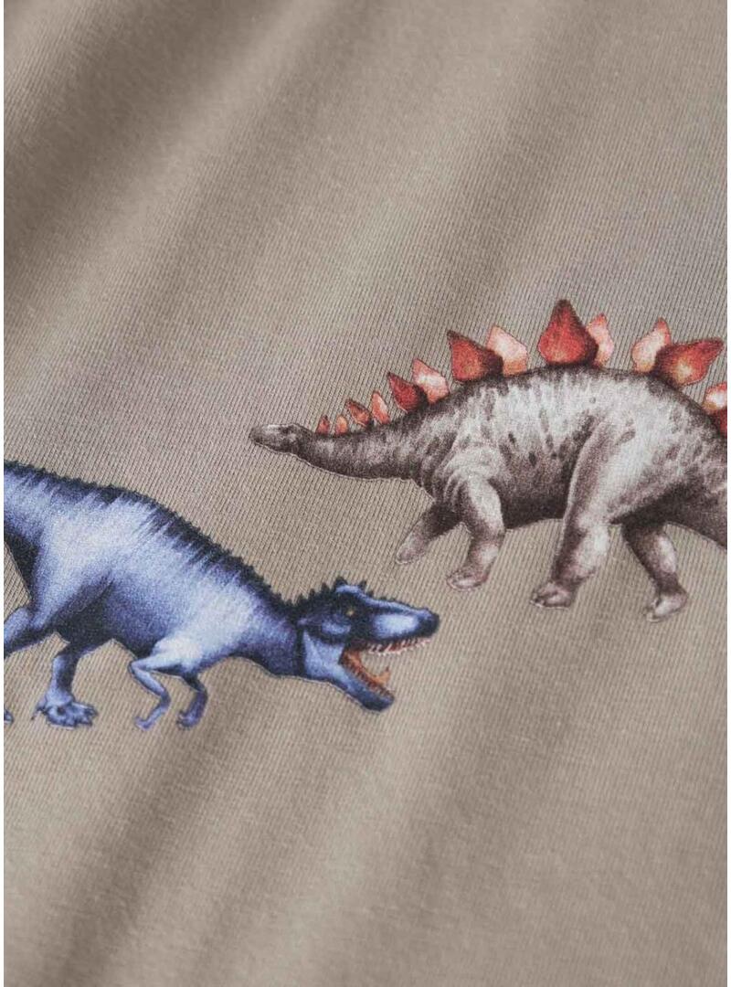 Maglietta Name It. Colore beige. Collo rotondo. Manica lunga. Tessuto liscio. Stampa frontale di dinosauri. Senza chiusura. Taglio dritto.