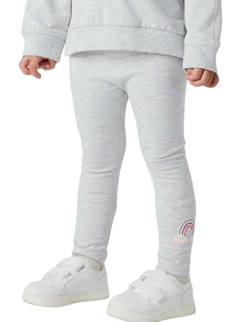 Leggings Name It. Modello Bilona. Colore grigio chiaro. Vita elasticizzata. Tessuto liscio. Dettaglio dell'arcobaleno sulla gamba. Vestibilità aderente. Stile basic.