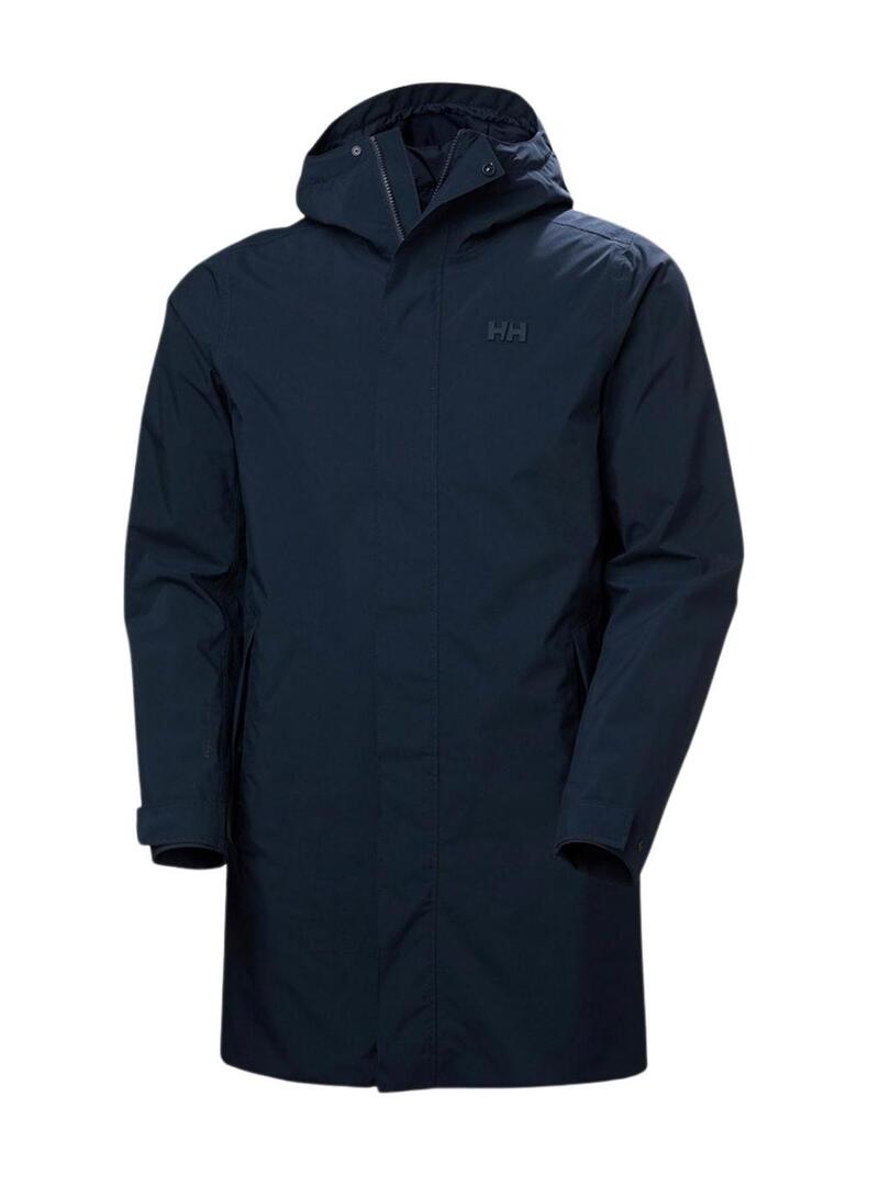 Impermeabile Helly Hansen. Modello Brussel. Colore blu scuro. Realizzato con tecnologia HELLY TECH Protection, questo cappotto è impermeabile, traspirante e antivento. Chiusura con zip e patta. Logo coordinato sul petto. Estremità delle maniche regolabili. Cappuccio regolabile. Tasche laterali. Tasca interna nascosta. Lunghezza sotto il ginocchio.