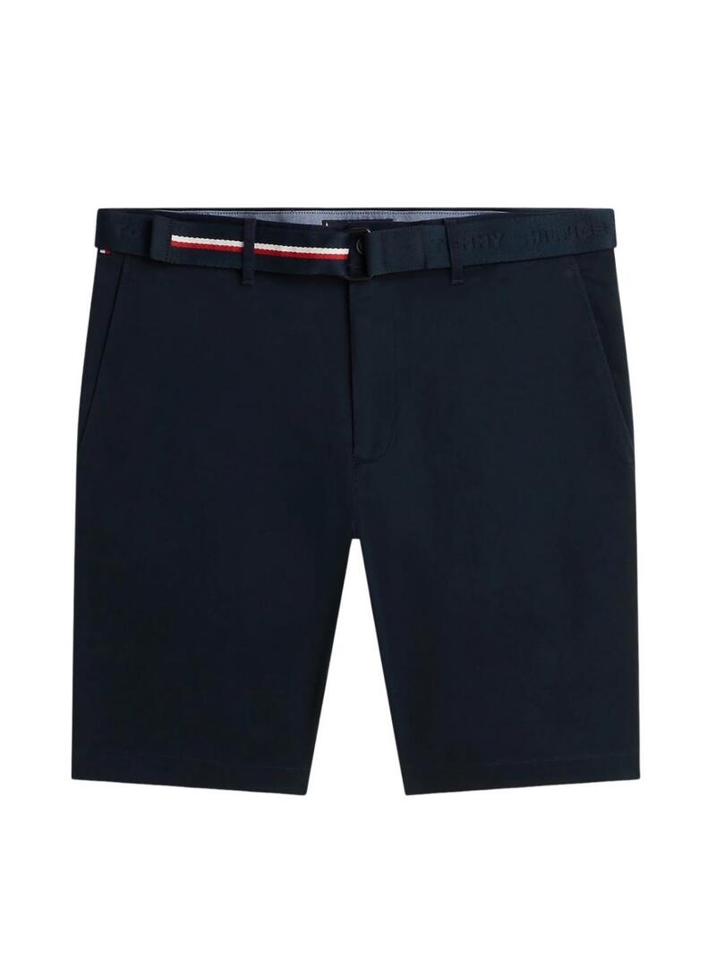 Bermuda Tommy Hilfiger. Modello Denton. Colore blu scuro. Twill di cotone elasticizzato. Chiusura con zip e bottone. Cintura removibile. Due tasche laterali. Due tasche posteriori a filetto con bottone. Dettagli distintivi di Tommy Hilfiger. Taglio slim.