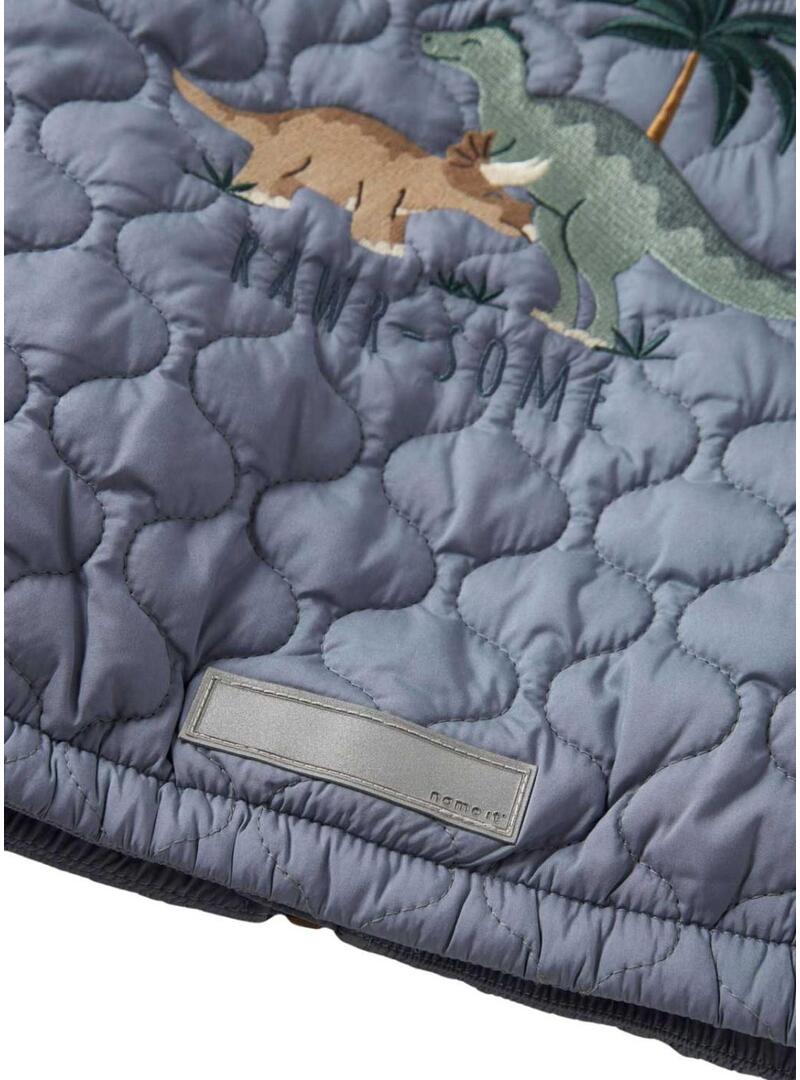 Giacca Name It Marlon imbottita con dinosauri blu grigio per bambino