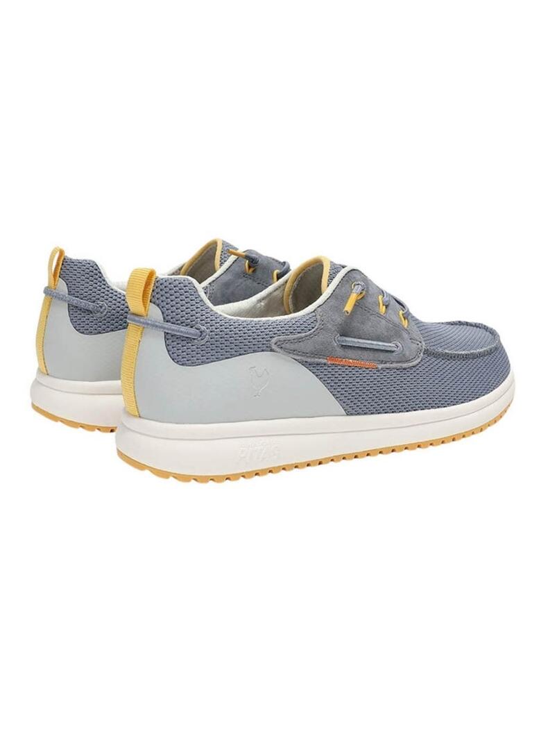 Scarpe da barca Walkin Pitas. Modello Bay. Colore blu. Realizzato in materiali tessili riciclati. Fodera in cotone al 100%. Suola Wave in EVA da 3 cm. Ultraleggero e flessibile. Suola antiscivolo. Soletta Confort ergonomica estraibile foderata in pelle. Lacci elastici Easy On.