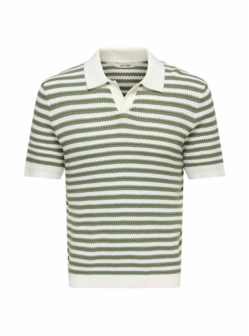 Polo Only and Sons a righe verdi in tessuto Serge per uomo