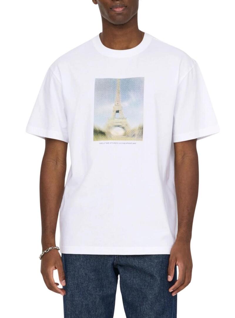 Maglietta Only and Sons Fred Eiffel bianca per uomo