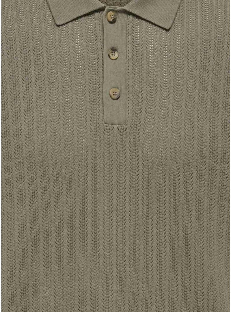 Maglia Only and Sons. Colore verde. Modello Moon. Colletto con tre bottoni. Manica corta. Vestibilità regolare. Tessuto a maglia strutturato.