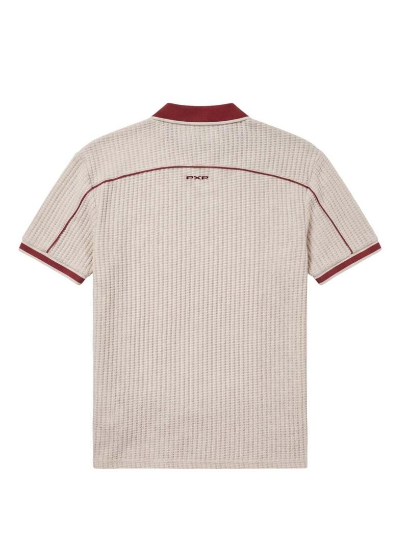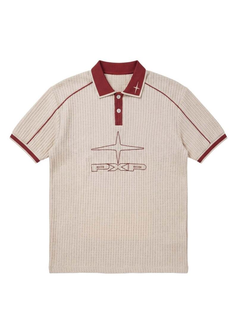Progetto Polo x Parigi. Taglio oversize. Colore beige. Colletto con patta e due bottoni. Manica corta. Tessuto a maglia testurizzato. Logo PXP ricamato sul petto. Bordo contrastato sulle spalle e sulle maniche.