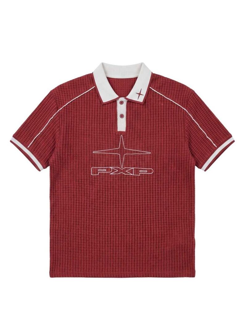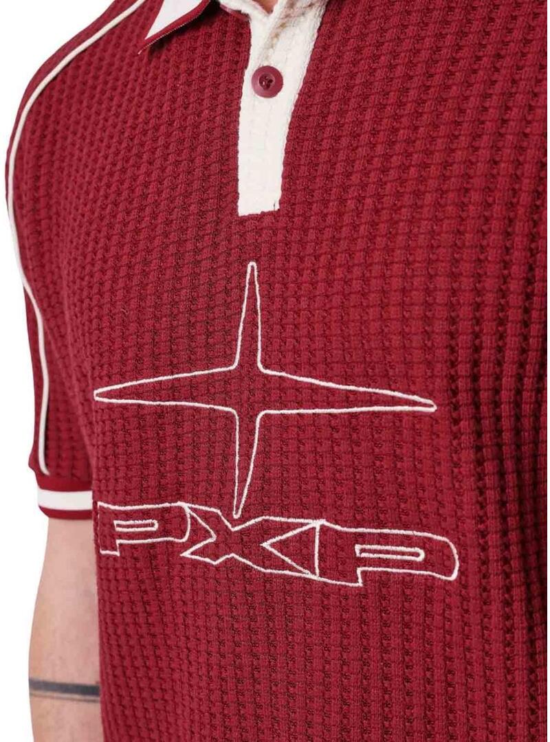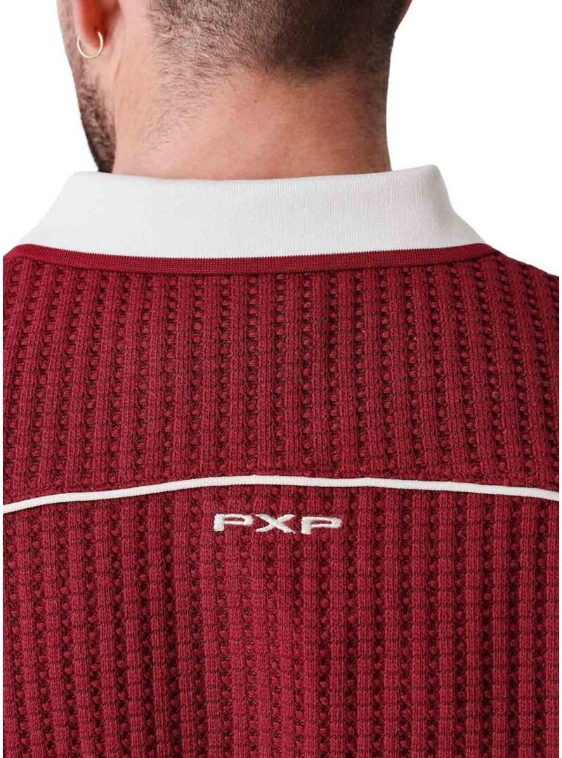 Progetto Polo x Parigi. Colore granata. Taglio oversize. Colletto con due bottoni. Manica corta. Maglia a coste. Logo PXP ricamato sul petto e sulla schiena. Finiture contrastanti sulle spalle e sulle maniche.