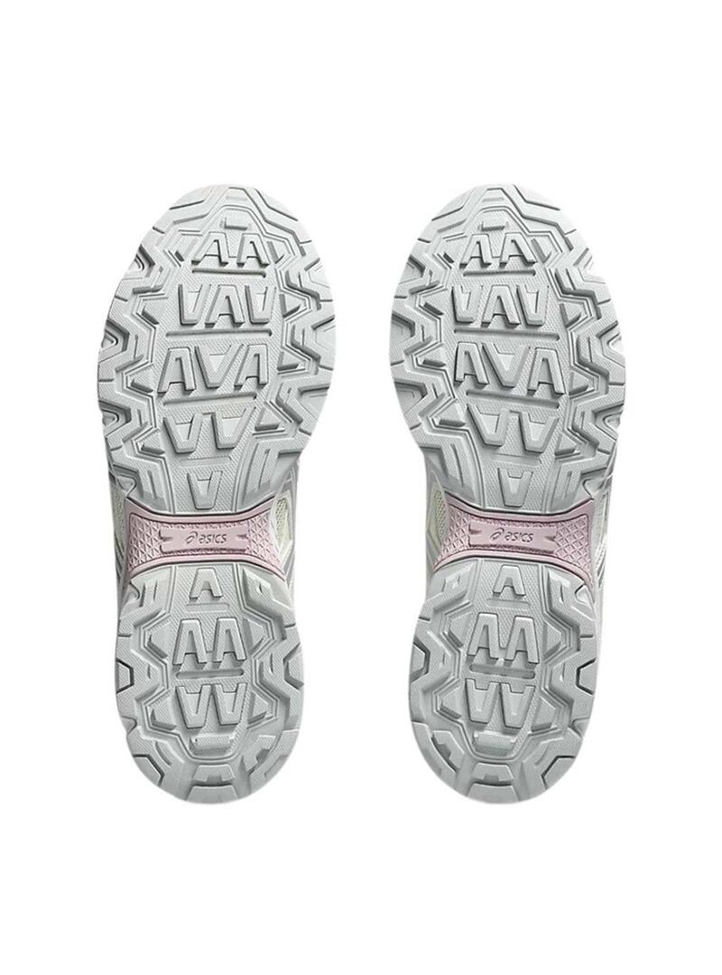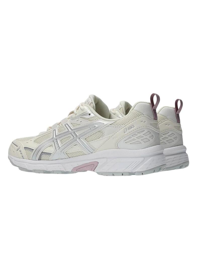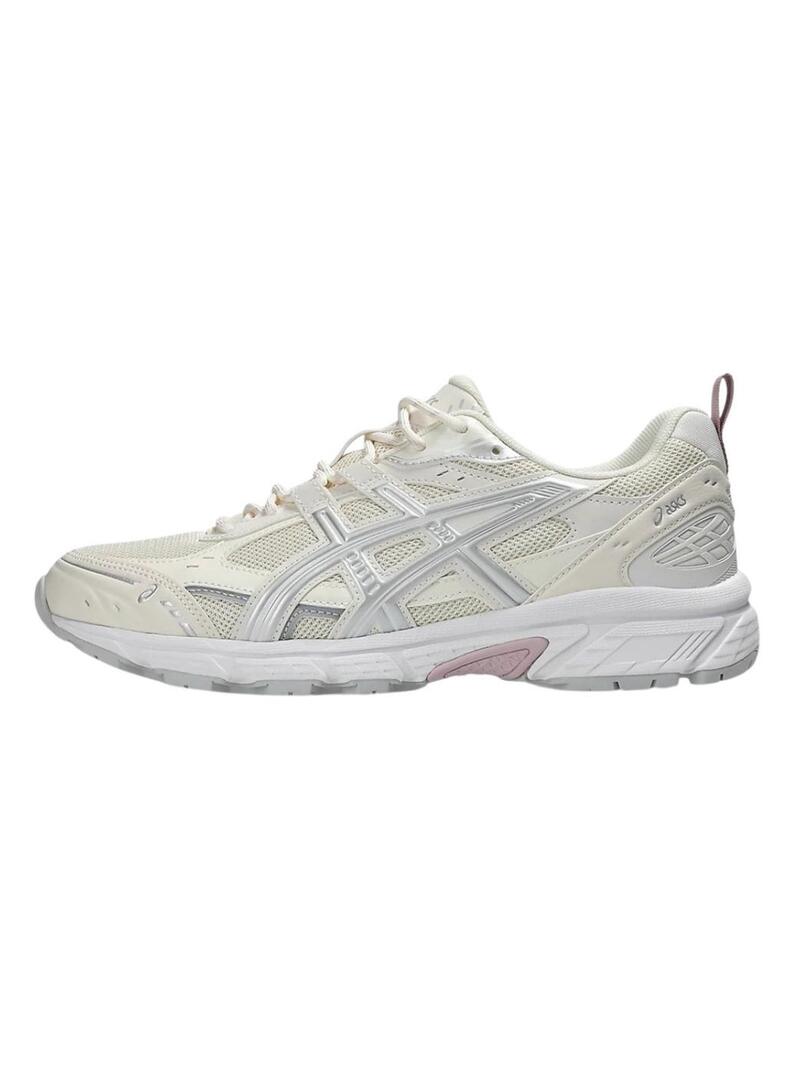 Scarpe Asics. Modello GEL NUNOBIKI. Colore crema. Ispirato alle scarpe da trail. Tecnologia GEL nel tallone. Parte superiore con strati sintetici opachi e semilucidi. Suola con motivo specifico per il trail running. Ottima aderenza su diverse superfici. Maniglia di colore rosa.