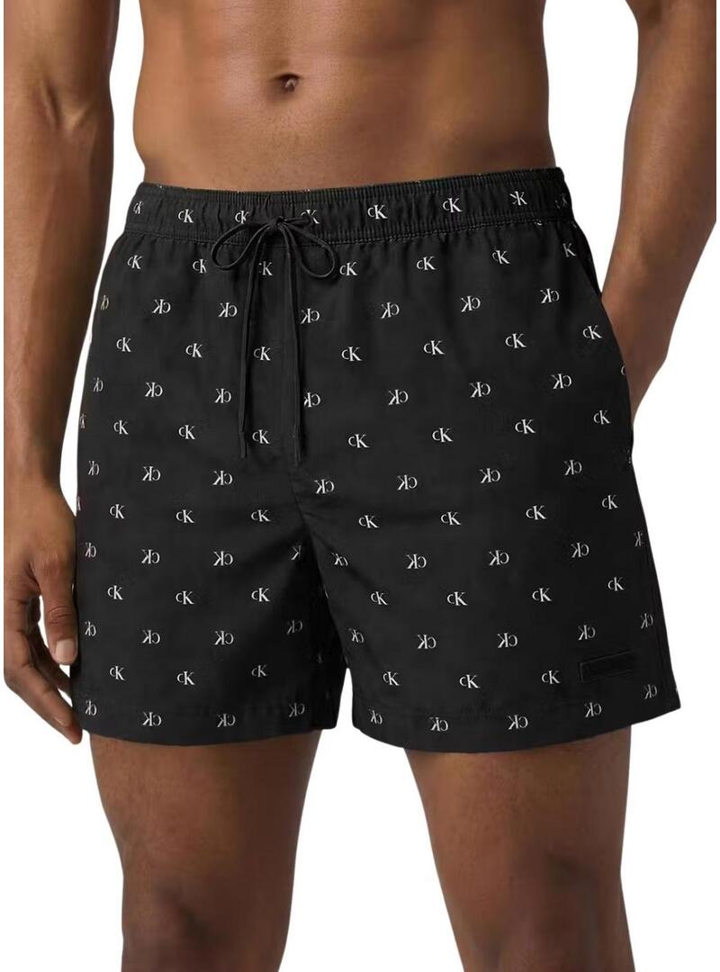 Costume da bagno Calvin Klein Jeans. Modello Covered. Colore nero. Stampato con monogramma in bianco. Vita elastica con cordino. Vestibilità regolare. Tasche laterali.