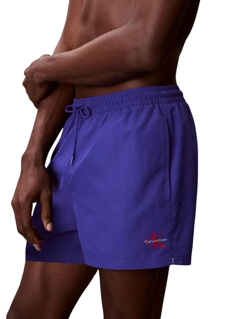Costume da bagno Calvin Klein Jeans. Modello Blue River. Colore viola. Vita elastica con coulisse. Vestibilità regolare. Logo stampato sul fondo. Tasche laterali. Stile semplice.