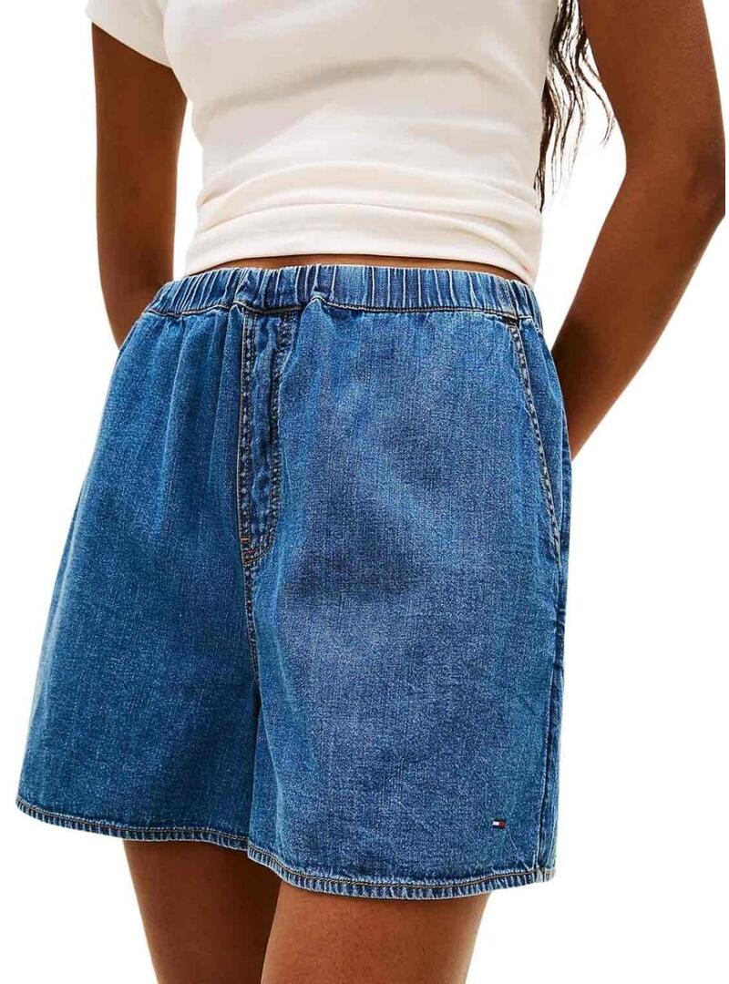 Pantaloni corti Tommy Jeans. Modello Chambray. Denim medio. Vita elastica. Taglio dritto. Tasche laterali. Denim leggero. Tasche posteriori a toppa.
