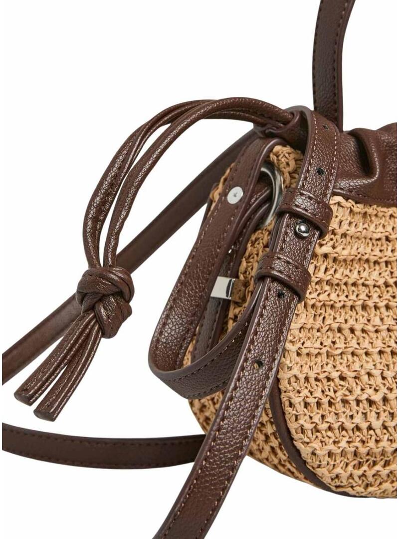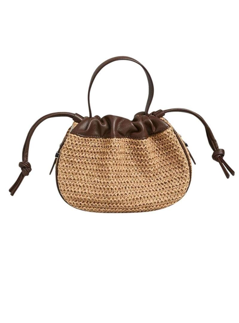 Borsa Pieces. Modello Ballan. Colore beige e marrone. Chiusura con lacci regolabili. Stile sacca. Manico superiore per il trasporto. Tracolla regolabile e rimovibile. Dimensioni: 17,5 x 24 x 8 cm.