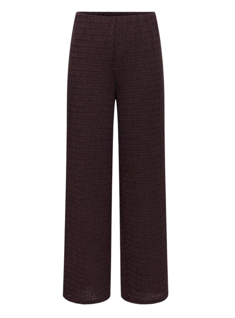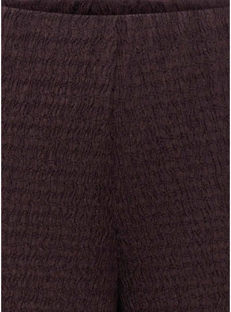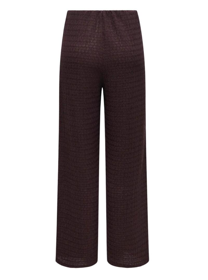 Pantaloni Only. Modello Ilse. Colore marrone. Tessuto strutturato. Vita media. Taglio regolare. Gamba dritta. Vita elasticizzata. La modella indossa la taglia S.