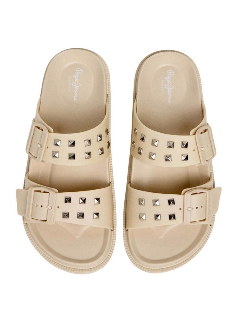 Sandali Pepe Jeans Ocean Studs beige per donna.