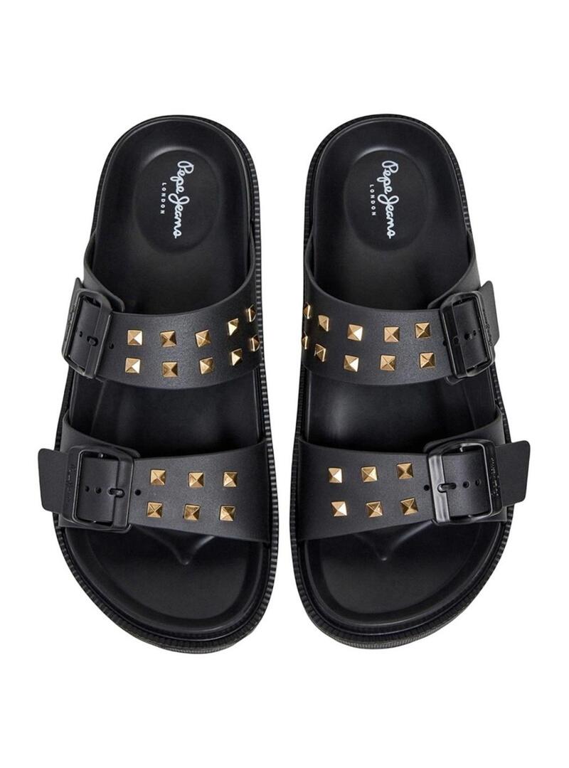 Sandali Pepe Jeans. Modello Ocean Studs. Colore nero. Doppia cinghia con chiusura a fibbia coordinata. Borchie argentate nella parte superiore. Soletta sagomata.