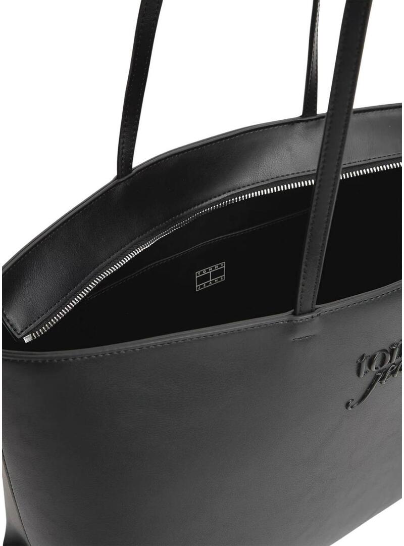 Borsa Tommy Jeans. Modello Must Tote. Colore nero. Logo inciso sul davanti. Chiusura con zip. Due manici superiori. Dimensioni: 48 x 13 x 25,5 cm. Capacità 11,9 litri.