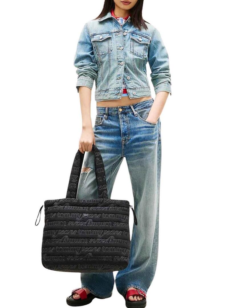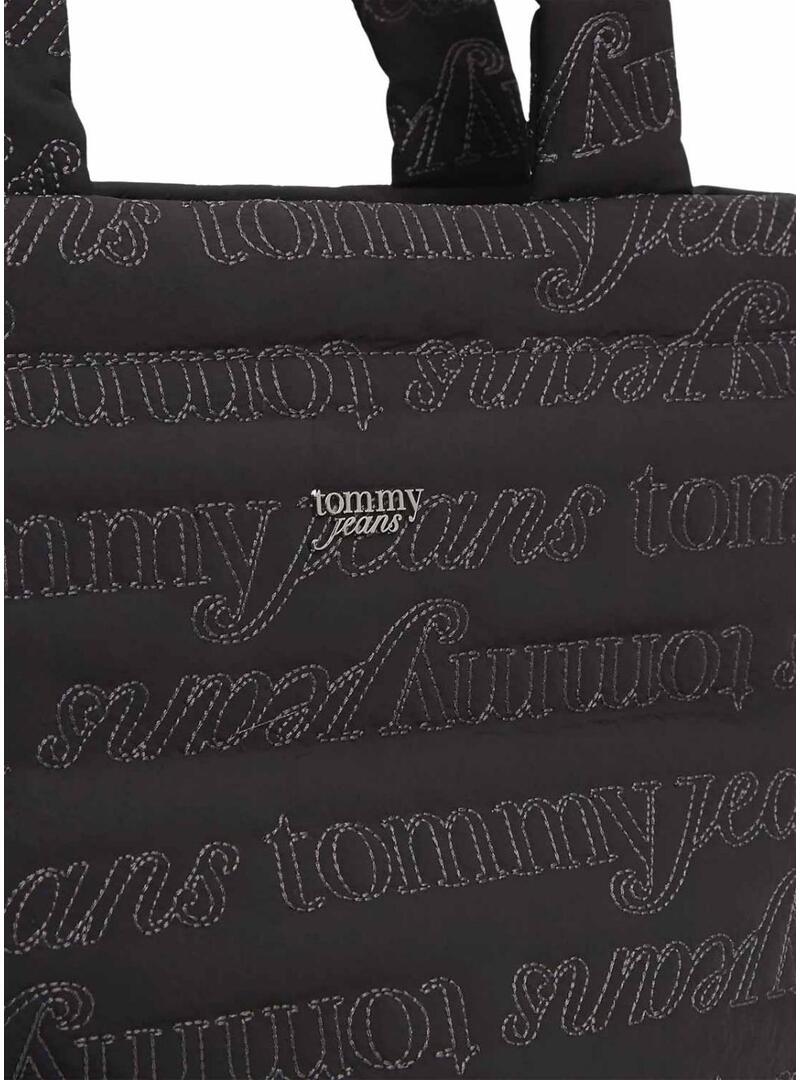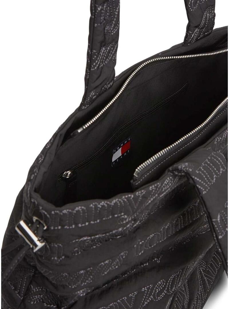 Borsa Tommy Jeans. Modello Icon. Colore nero. Realizzata in nylon riciclato. Doppio manico superiore. Tessuto trapuntato con stampa monologo a contrasto. Tasca interna con zip. Dimensioni: 41 x 16 x 33 cm. Capacità di 14 litri.