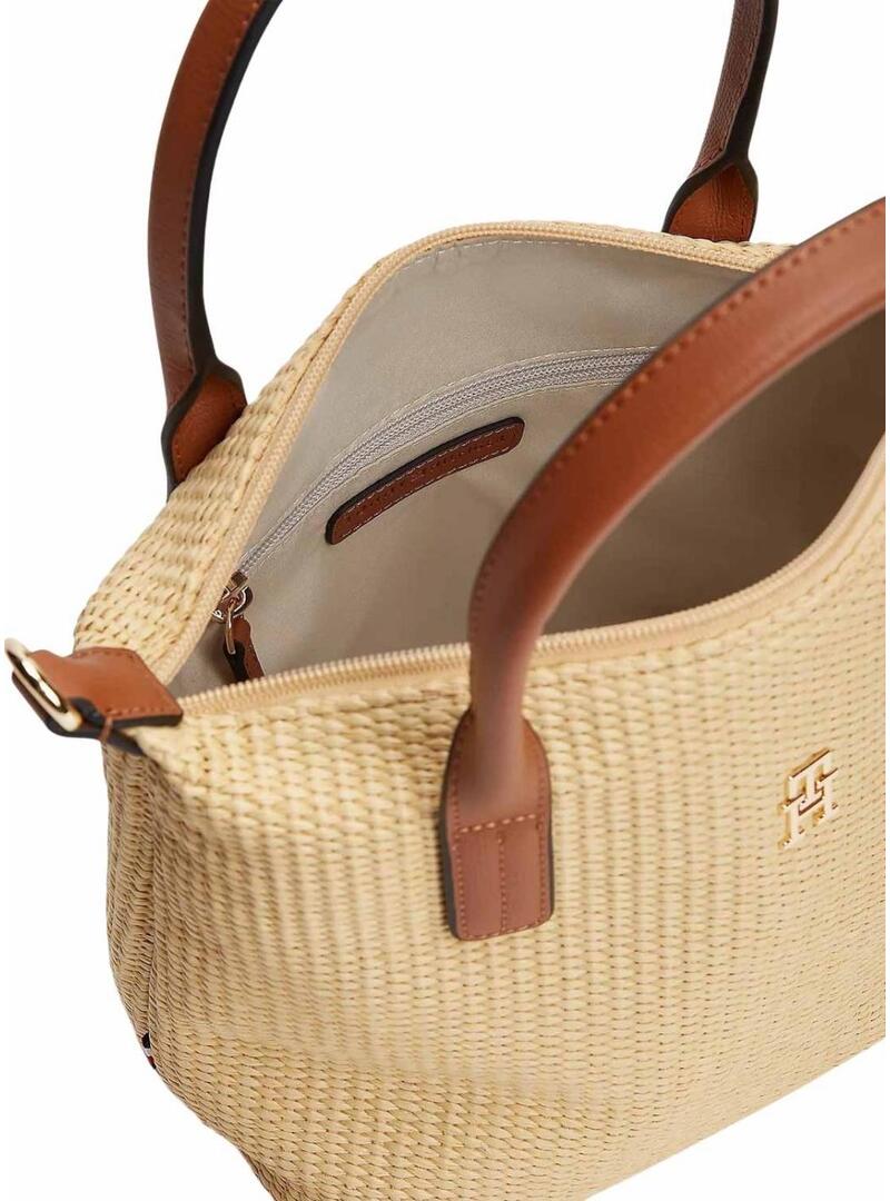 Borsa Tommy Hilfiger. Modello Popete mini. Colore naturale. Realizzato in rafia con dettagli in pelle marrone. Chiusura con zip. Due manici superiori a contrasto. Tasca interna con zip. Due tasche interne aperte. Logo monogramma TH sulla parte anteriore. Tracolla rimovibile e regolabile. Dettagli distintivi di Tommy Hilfiger. Misure di 34 x 14 x 21 cm. Capacità di 7 litri.