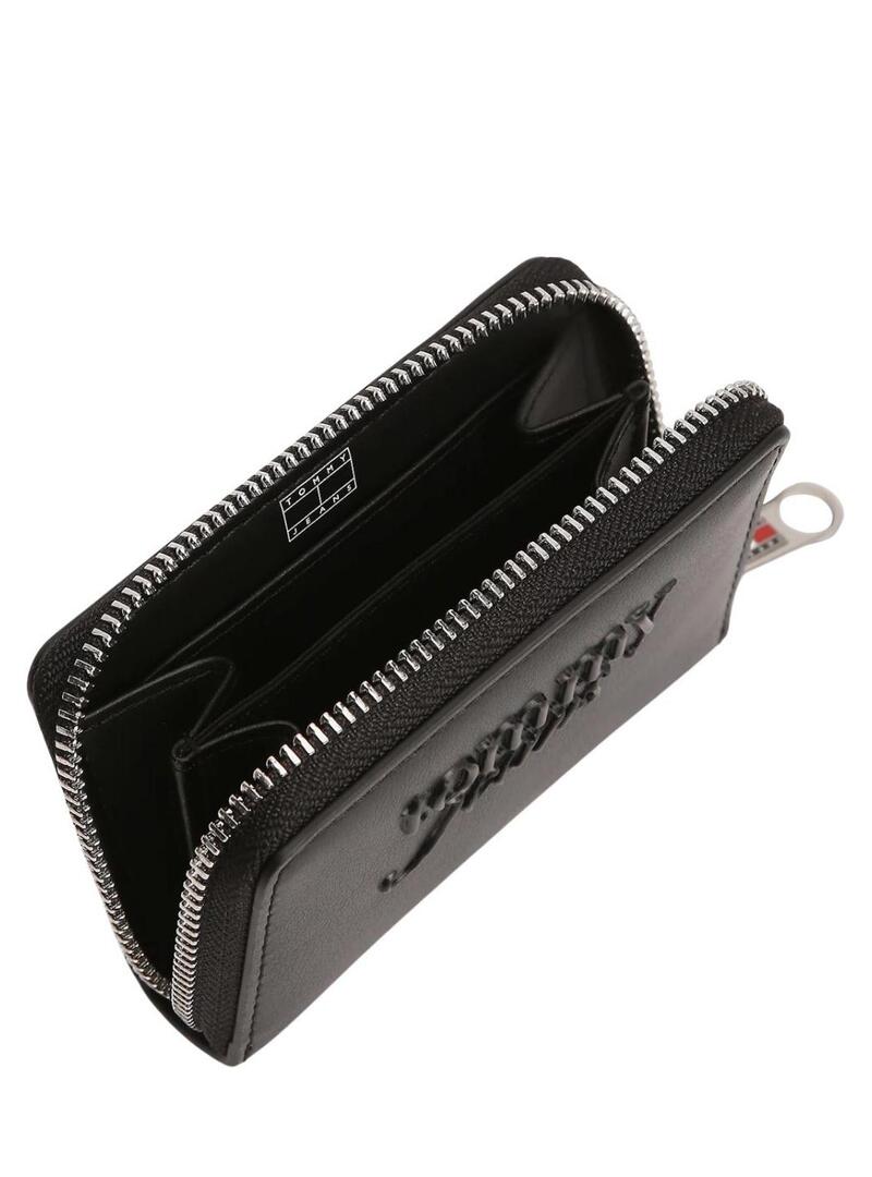 Portafoglio Tommy Jeans. Modello Must small. Colore nero. Chiusura con bottone a pressione. Tasca con zip per le monete. Scomparti interni per banconote e carte. Logo Tommy testurizzato in carattere Script sulla parte anteriore. Dimensioni: 11 x 2 x 7,8 cm.