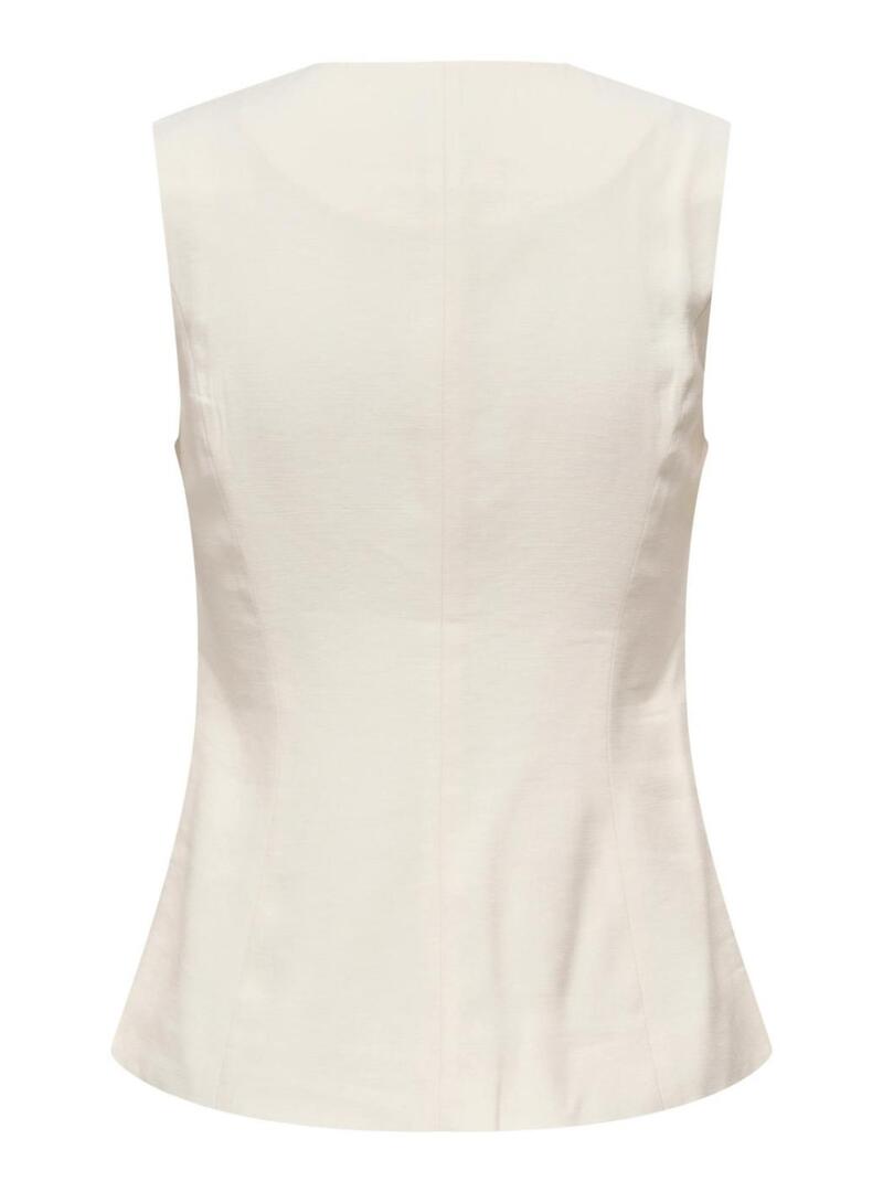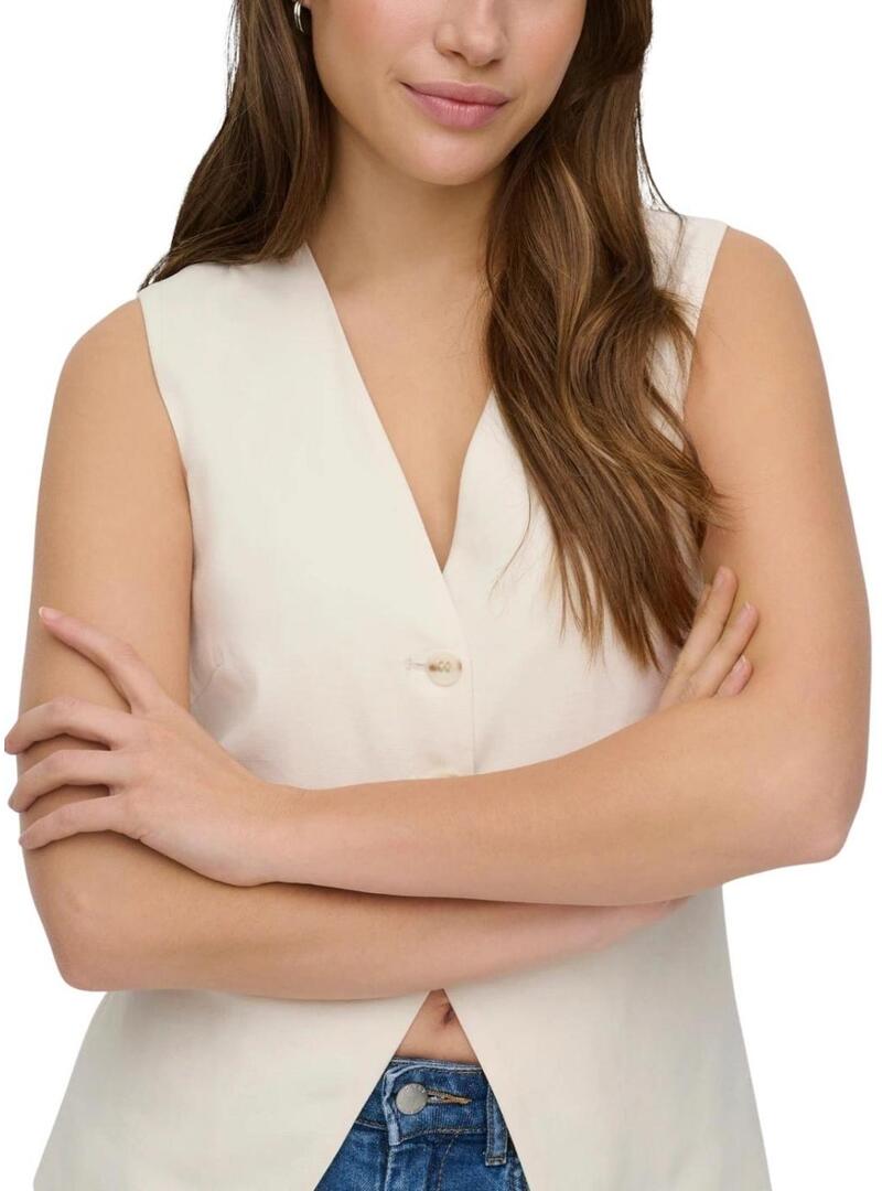 Gilet Only. Modello Tila. Colore bianco. Scollo a V pronunciato. Chiusura con tre bottoni. Leggermente aderente in vita.