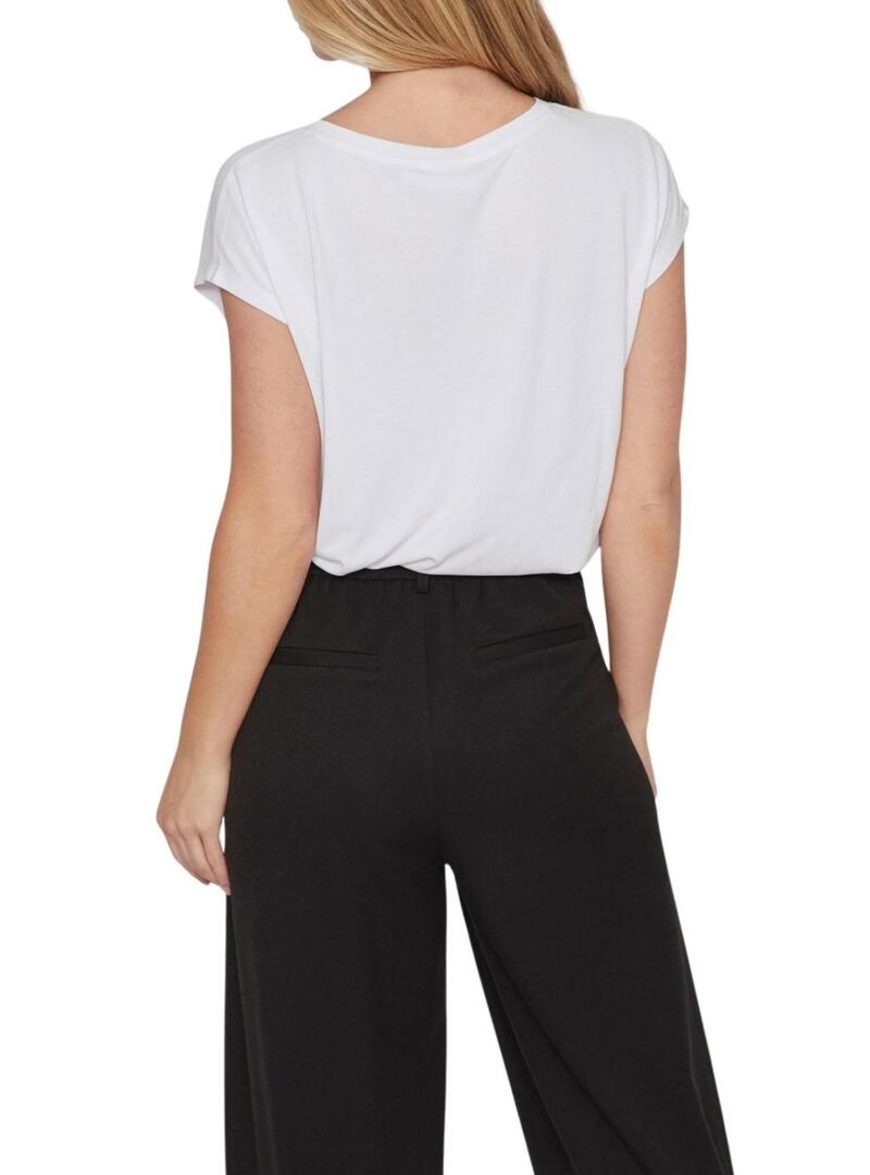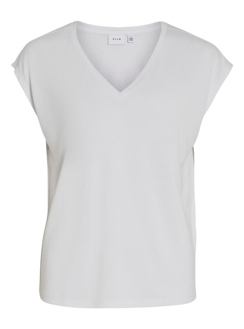 Maglietta Vila. Modello Vimodala. Colore bianco. Scollo a V. Maniche corte. Tessuto leggero e morbido. Stile basic.