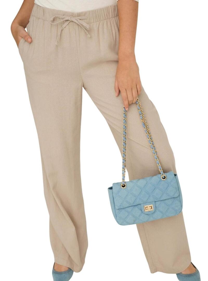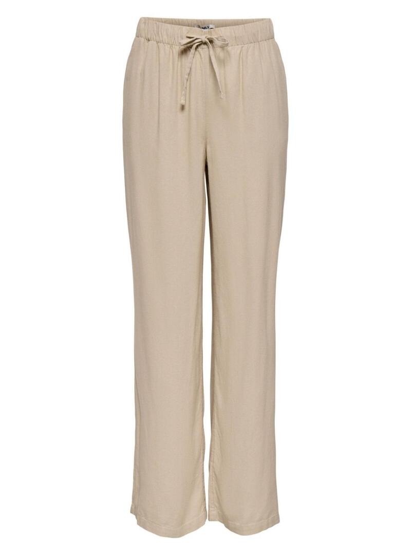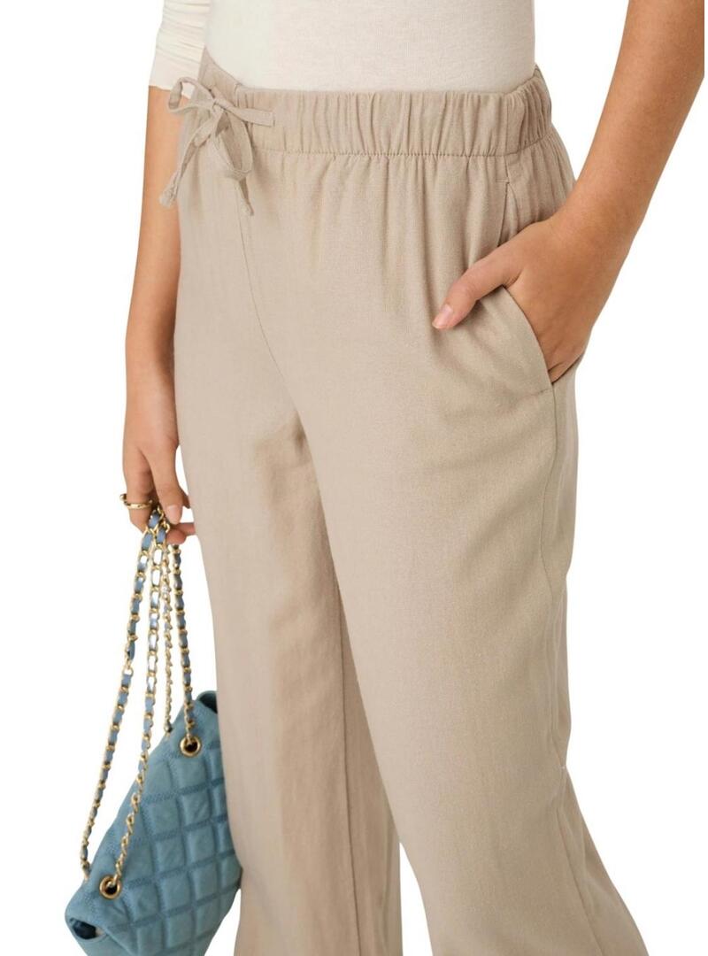 Pantaloni Only. Modello Goa. Colore beige. Vita elasticizzata regolabile con coulisse. Tasche laterali. Gamba ampia. Tessuto fluido.
