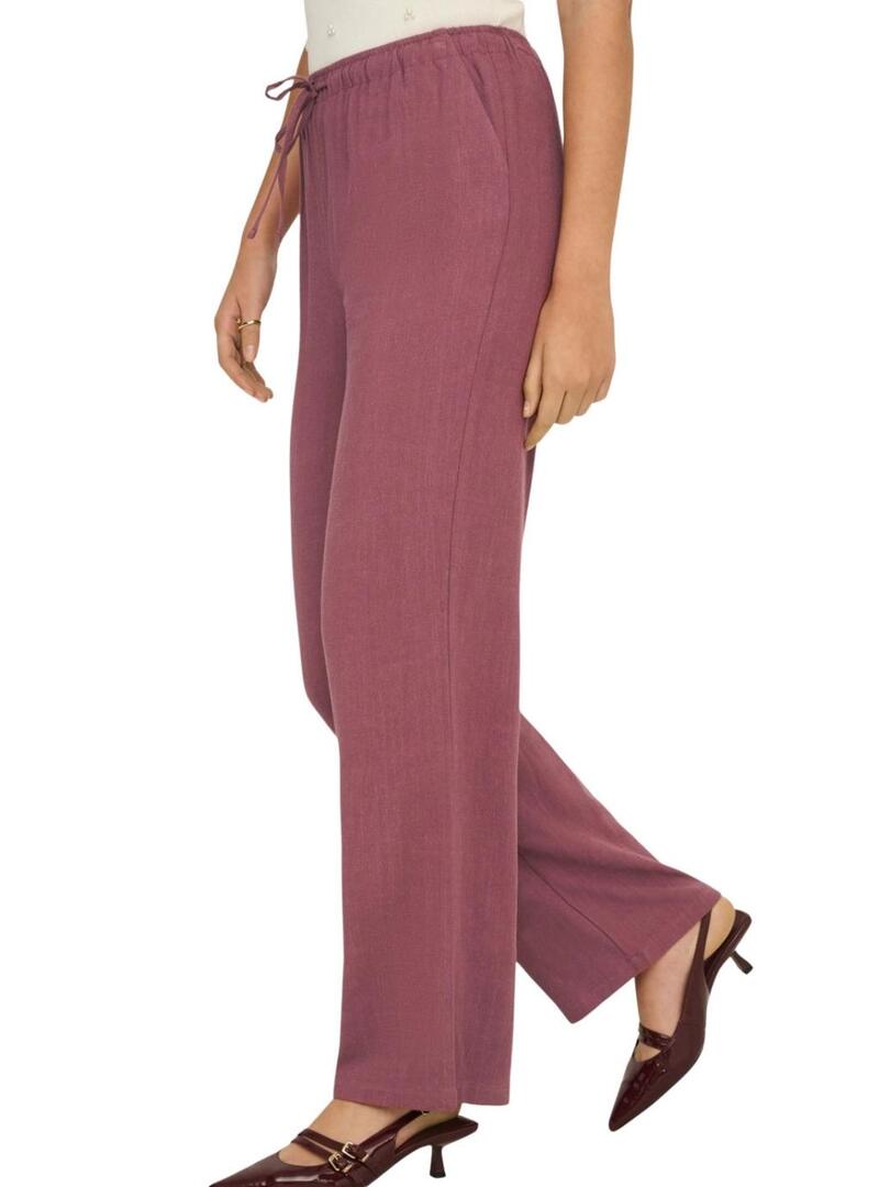 Pantalone Only. Modello Siesta. Colore rosa cipria. Vita elastica, regolabile con cordino. Cavallo medio. Taglio dritto. Tessuto fluido con lino. Tasche laterali. Stile basic.