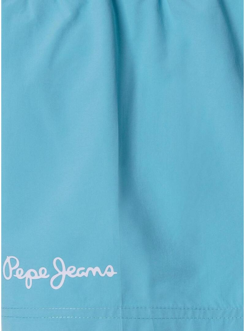 Costume da bagno Pepe Jeans. Logo stampato. Tessuto leggero di colore uniforme. Colore blu. Tessuto ad asciugatura rapida. Vita elastica con coulisse regolabile. Logo stampato sulla gamba sinistra. Tasca posteriore con chiusura in velcro. Rete interna con tasca portamonete. Realizzato con materiali riciclati.