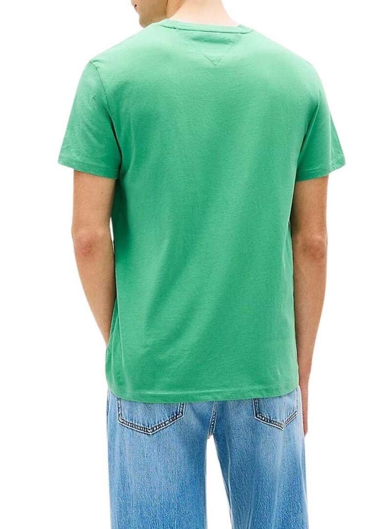 Maglietta Tommy Jeans. Colore verde. Manica corta. Colletto rotondo a coste. Logo lineare sul petto. Bandiera del marchio ricamata. Taglio aderente.