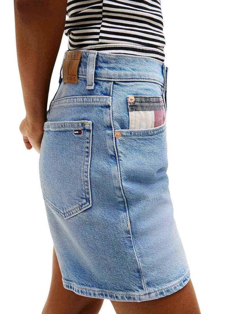Shorts Tommy Jeans. Tessuto denim elasticizzato. Effetto consumato. Cinque tasche. Tasca per le monete con blocchi di colore del marchio. Ricamo della bandiera di Tommy sulla tasca posteriore. Vestibilità mom. Gamba dritta. Vita media.