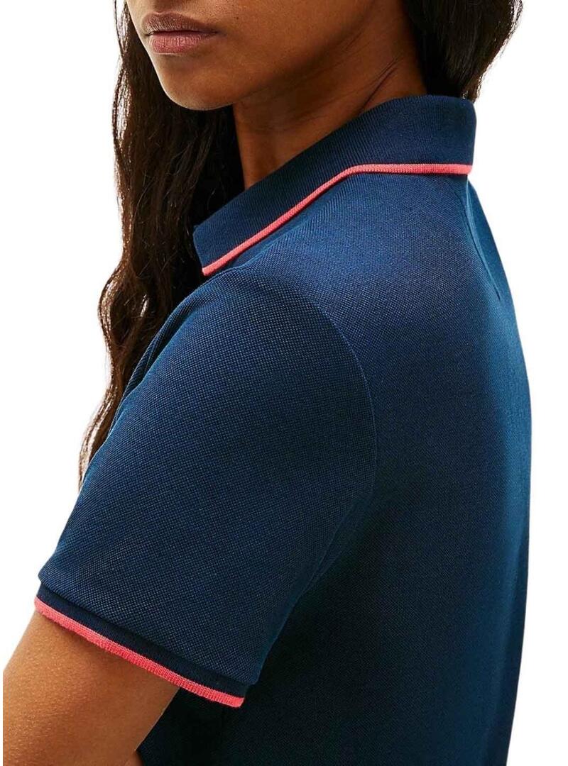 Abito Tommy Jeans. Tessuto in piquet. Manica corta. Gonna plissettata. Lunghezza corta. Colletto a polo con tre bottoni. Bandiera di Tommy Jeans ricamata sul petto. Dettagli a contrasto sul colletto e sulle maniche. Il modello indossa la taglia S.