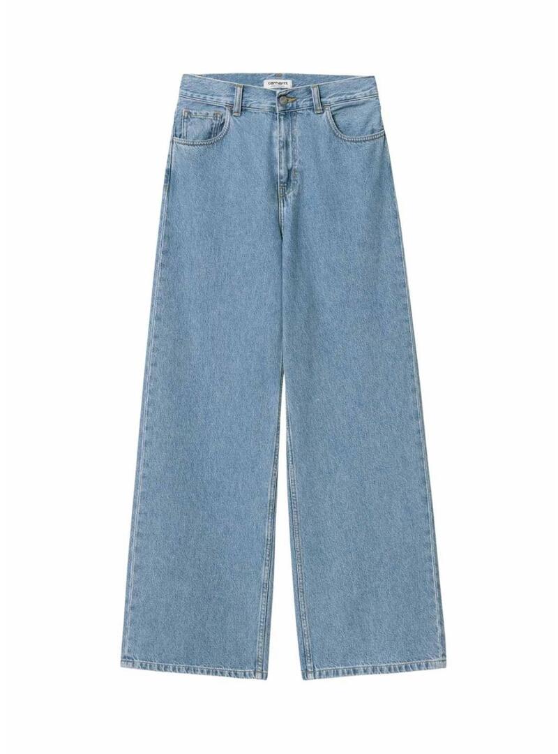 Pantaloni in denim Carhartt. Modello Jane. Denim medio. Cinque tasche. Chiusura con bottone e cerniera. Patch del marchio sulla tasca posteriore. Vestibilità ampia.