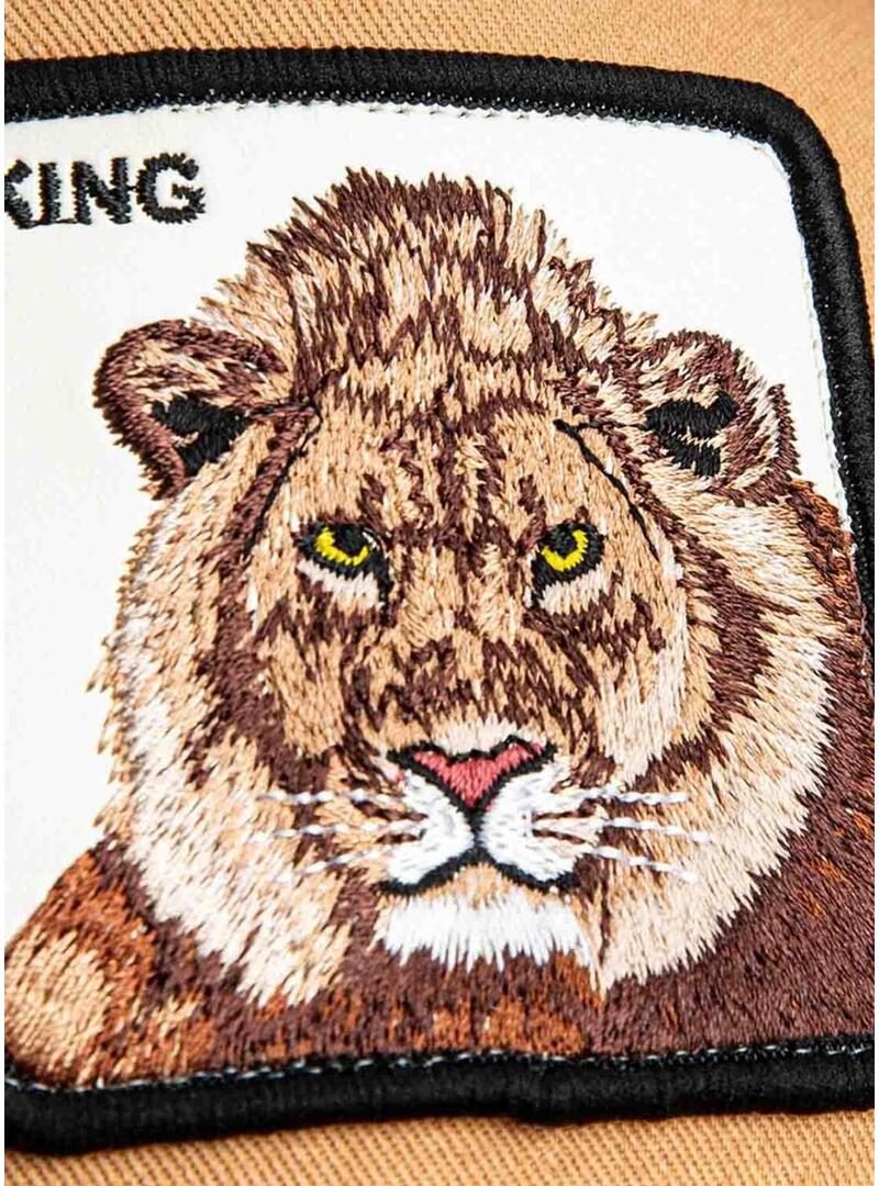 Cappello Goorin Bros. Modello King. Colore giallo e marrone. Visiera a contrasto. Etichetta laterale. Illustrazione di un leone ricamato sul davanti. Parte posteriore in rete. Cinturino posteriore regolabile.