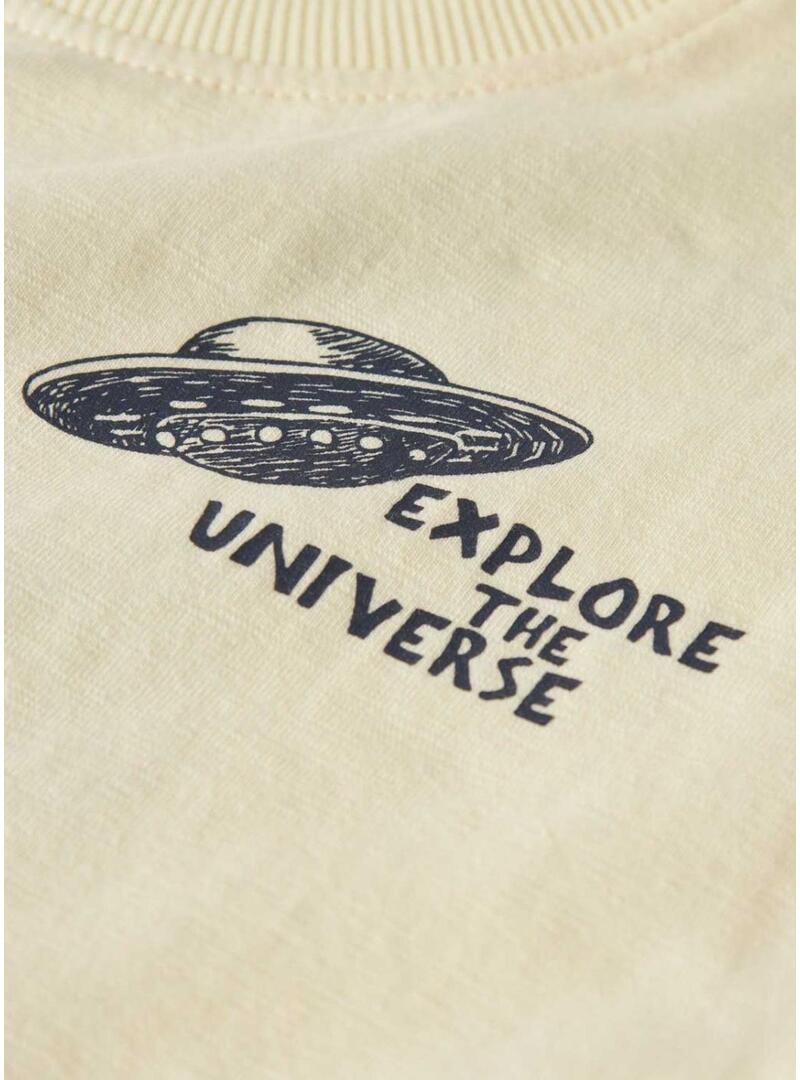 Maglietta Nameit. Modello Dib. Colore giallo. Collo rotondo. Manica corta. Stampa in gomma morbida sul petto e sulla schiena. Vestibilità regolare. Collo a costine.