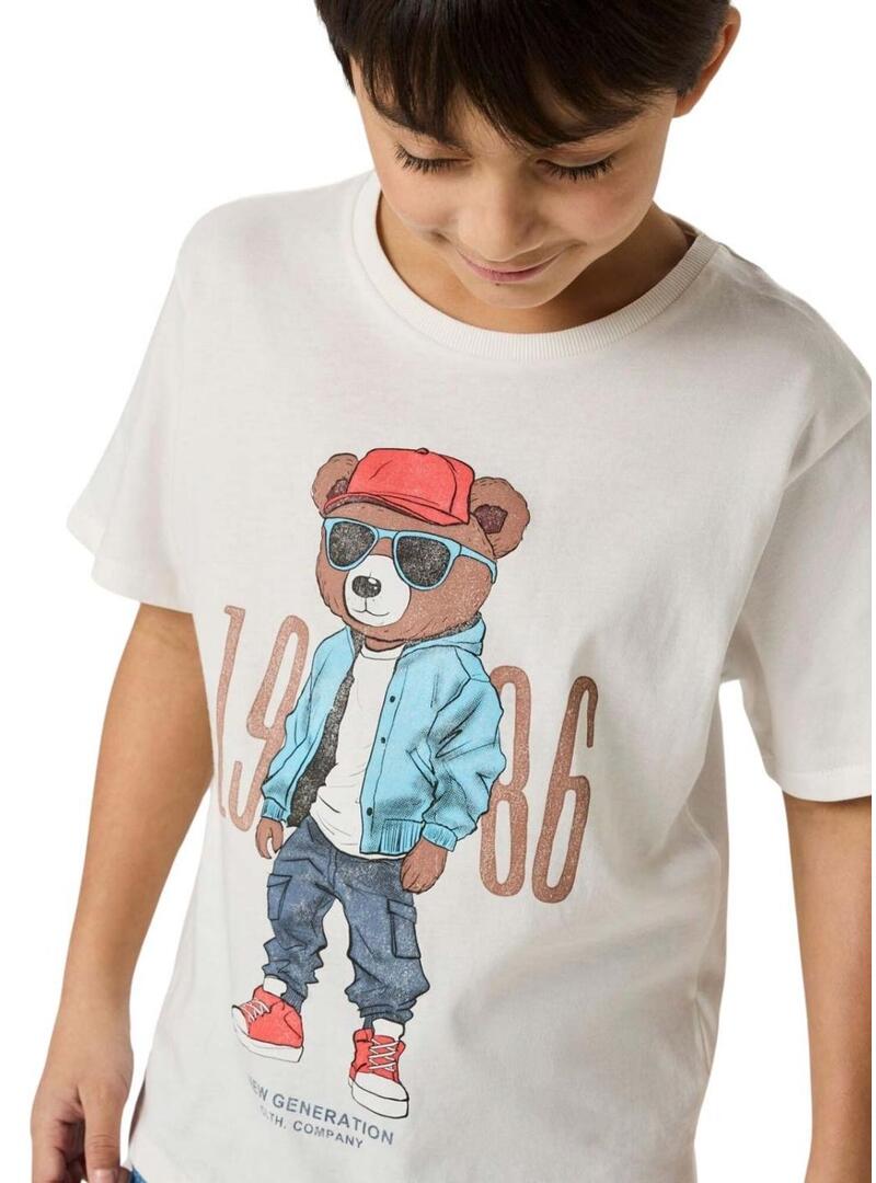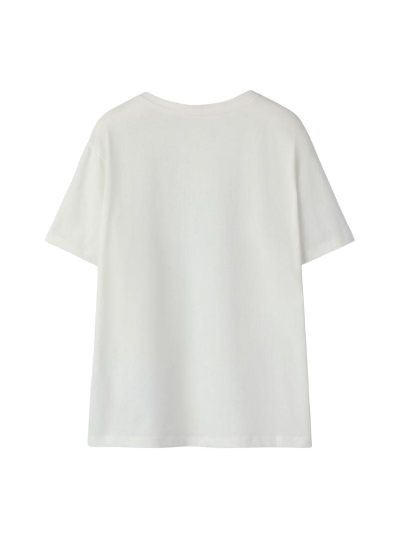 Maglietta Name It. Modello Dobs. Colore bianco. Collo rotondo a costine. Manica corta. Tessuto leggero ed elastico. Vestibilità regolare. Grafica a colori stampata sul petto.