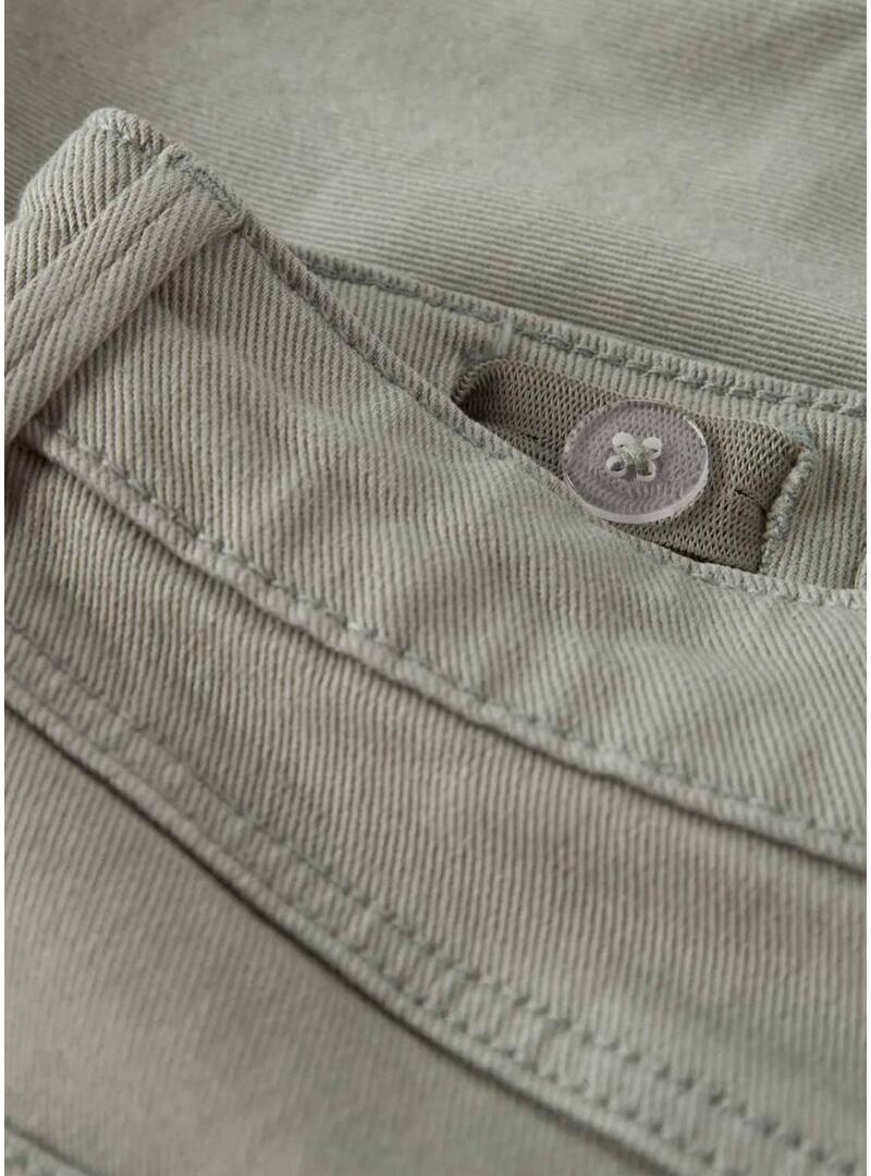 Bermuda Name It. Modello Ryan. Colore verde. Tessuto di twill. Chiusura con bottone e zip. Taglio regular fit. Cinque tasche. Passanti per cintura. Elastico per regolazione interna in vita.