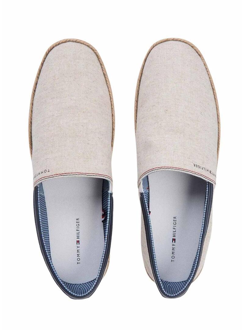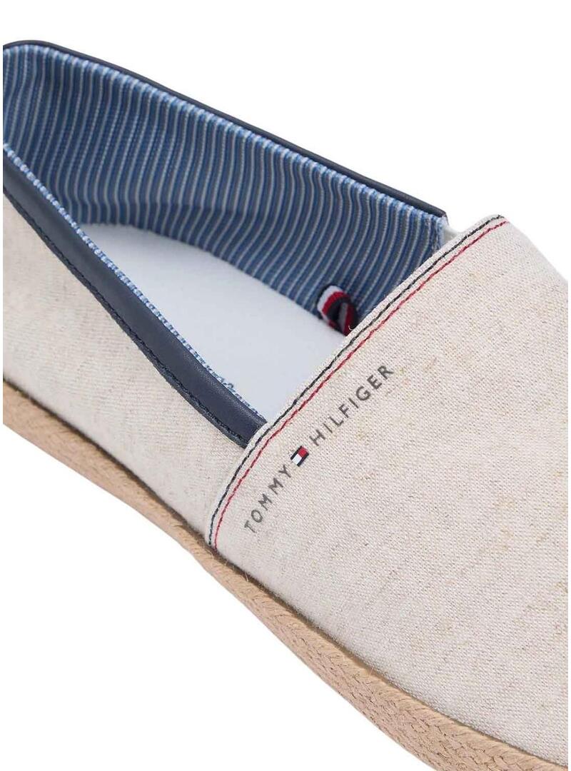 Espadrillas Tommy Hilfiger. Esterno in lino. Colore beige. Suola in gomma. Intersuola rivestita in iuta. Finiture in pelle a contrasto. Logo di Tommy Hilfiger nella parte superiore. Dettagli del marchio. Bandiera del marchio sul tallone.
