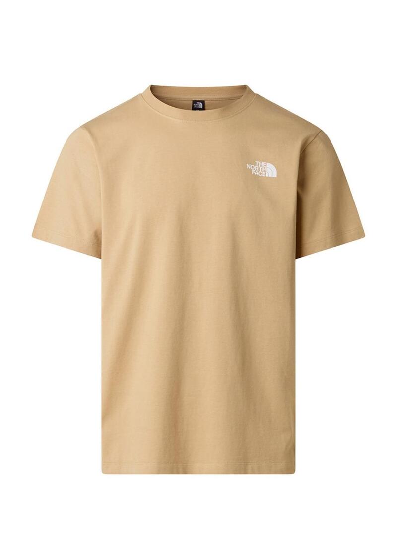 Maglietta The North Face. Modello Denali. Colore beige. Collo tondo. Manica corta. Vestibilità leggermente oversize. Logo stampato sul petto. Illustrazione del picco Denali stampata sul retro. Dettagli in blu e verde.