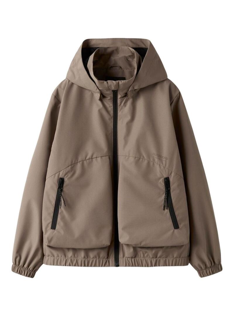 Giacca Name It. Modello Macon. Colore marrone. Cappuccio removibile. Finiture elastiche. Chiusura con zip. Tasche frontali con zip. Trattamento BIONIC FINISH ECO resistente all'acqua.