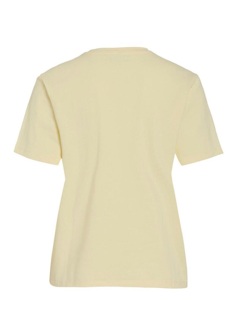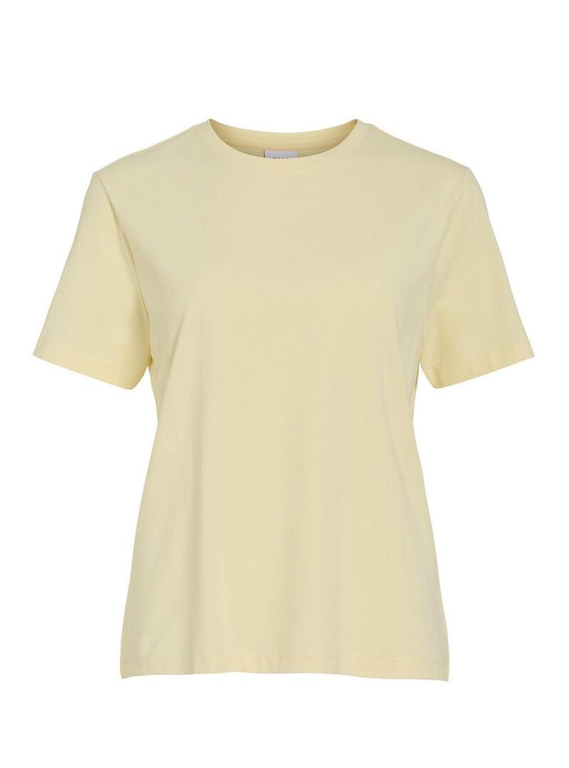 Maglietta Vila. Modello Nora. Colore giallo. Collo rotondo. Manica corta. Vestibilità dritta. Stile basico. Realizzata al 100% in cotone.