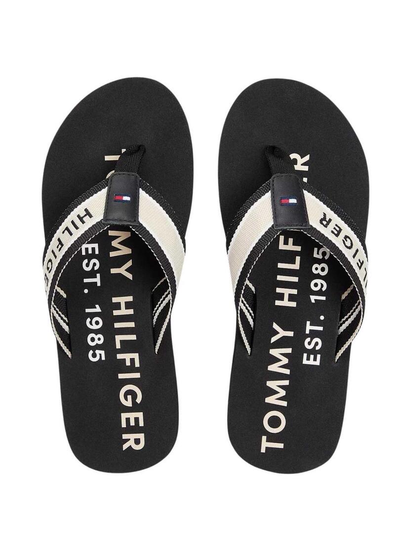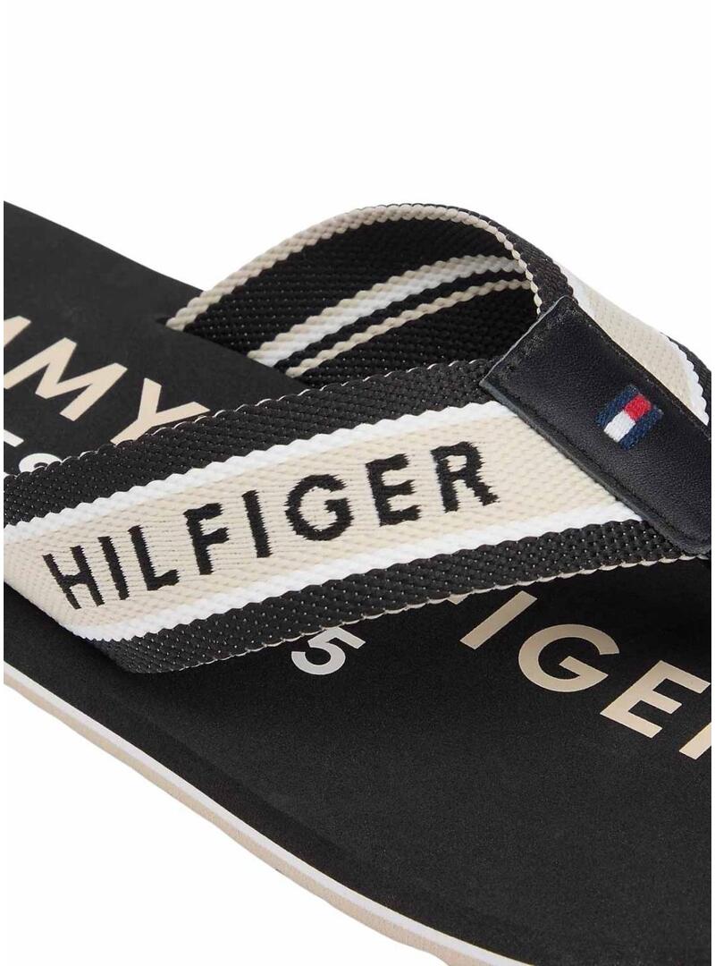 Infradito Tommy Hilfiger. Colore nero. Suola in EVA. Cinghie intrecciate in tessuto con nastro distintivo. Logo di Tommy Hilfiger ricamato sulla cinghia. Dettaglio a righe sull'intersuola. Altezza della suola di 1,6 cm.