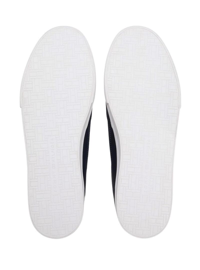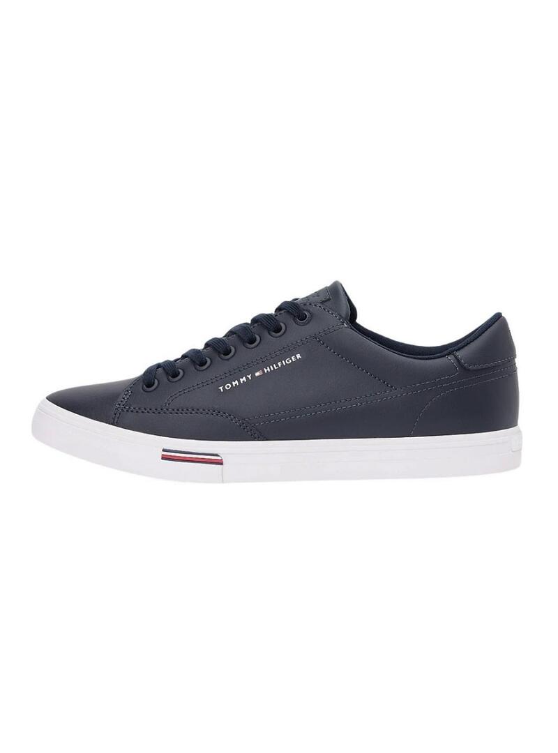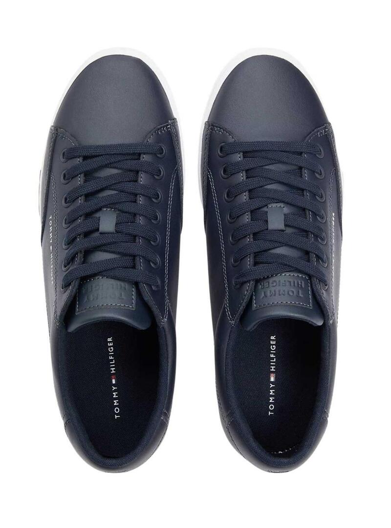 Scarpe Tommy Hilfiger. Colore blu navy. Taglio basso. Chiusura con lacci. Esterno in pelle combinata. Suola distintiva. Logo laterale. Suola in gomma bianca vulcanizzata. Soletta removibile. Logo Tommy Hilfiger in gomma sul tallone.