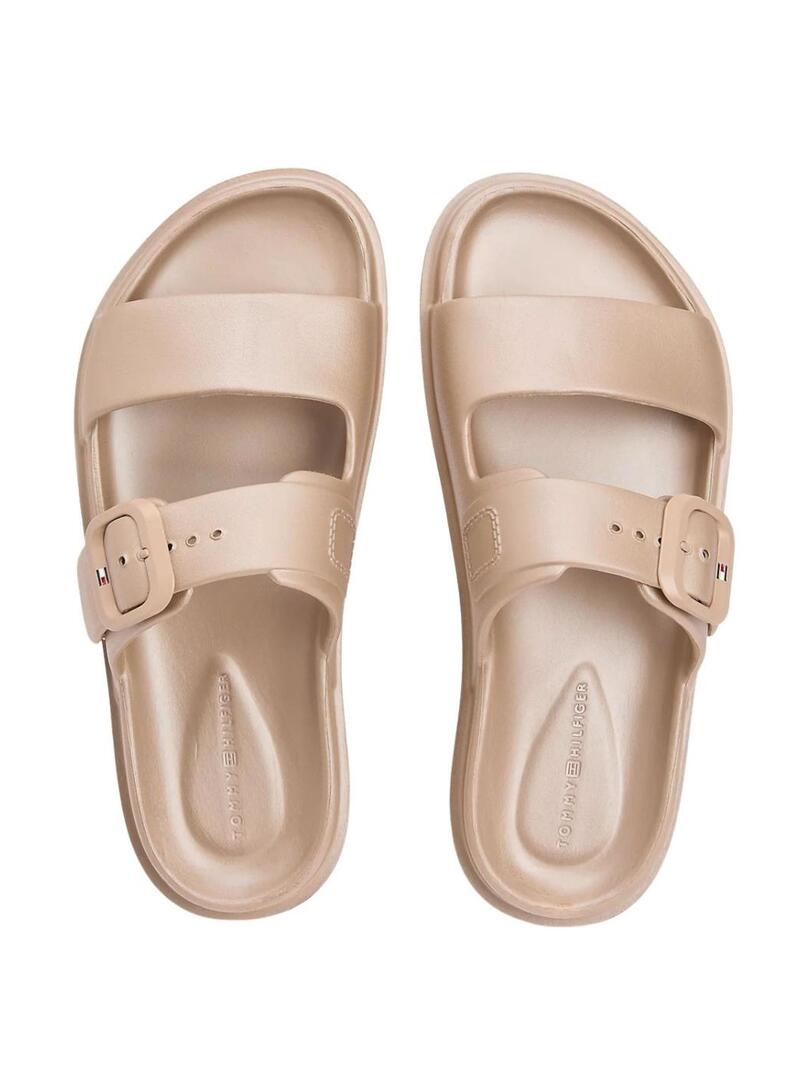 Sandali Tommy Hilfiger. Esterno in EVA. Colore metallizzato. Suola in EVA. Leggeri. Doppia cinghia con fibbia. Logo di Tommy Hilfiger in rilievo nella soletta. Logo smaltato di Tommy Hilfiger sulla fibbia. Altezza della suola di 3,3 cm.