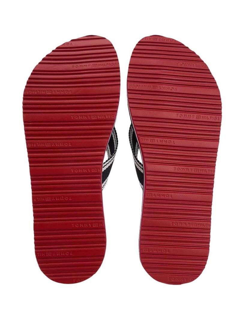 Sandali Tommy Hilfiger. Colore blu scuro. Suola in EVA. Esterno in poliestere. Cinghie intrecciate in Jacquard. Design color block distintivo nella suola intermedia. Logo smaltato di Tommy Hilfiger sulla cinghia. Altezza della suola di 2 cm.