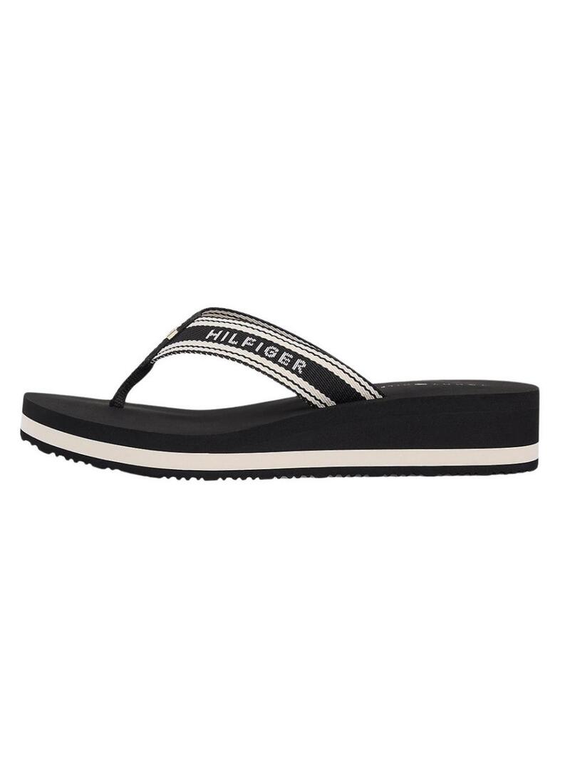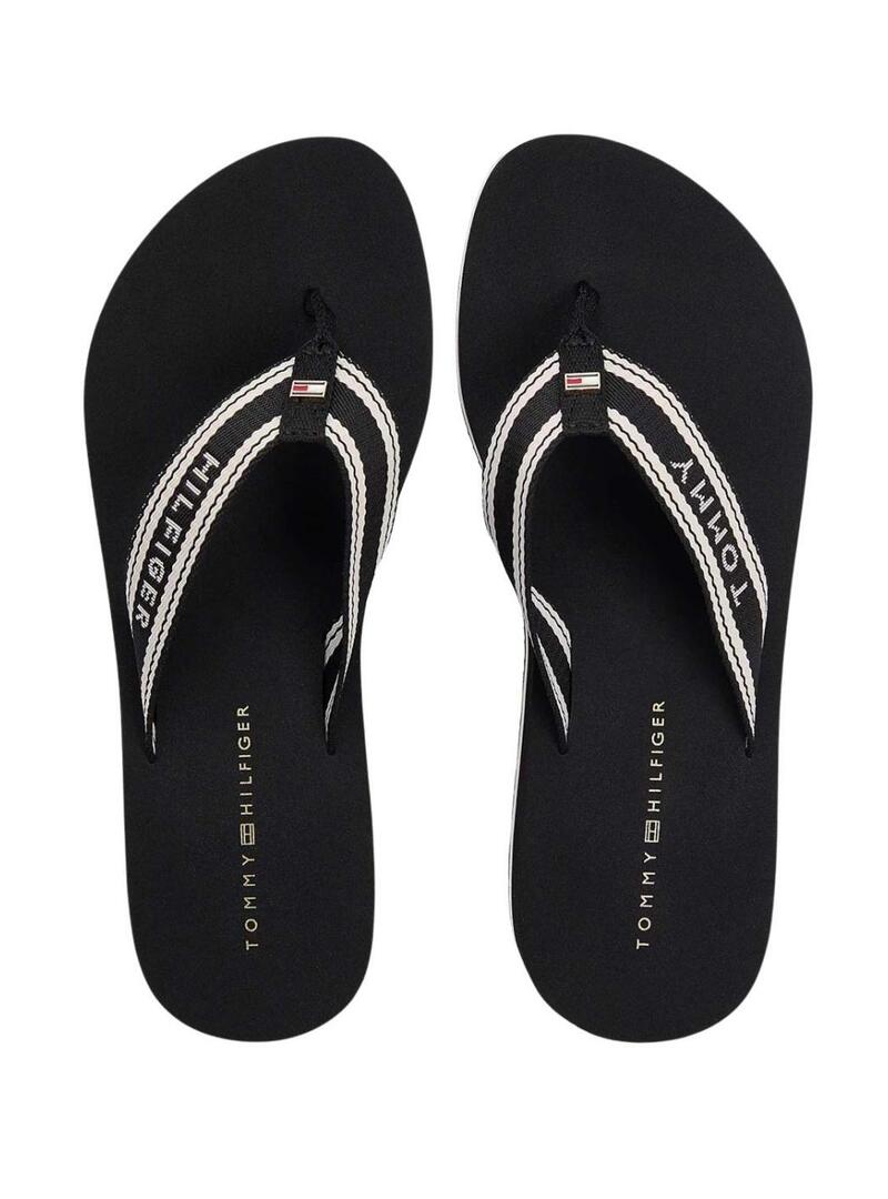 Ciabatte Tommy Hilfiger. Colore nero. Suola in EVA. Esterno in poliestere. Cinghie intrecciate in Jacquard. Con zeppa. Altezza della suola di 3,8 cm. Dettagli distintivi di Tommy Hilfiger.