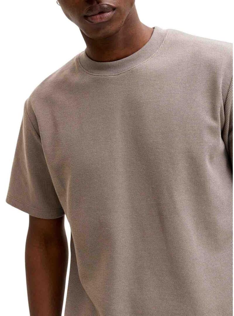 Maglietta Jack and Jones. Modello Austin. Colore beige. Collo tondo. Manica corta. Vestibilità ampia. Tessuto a coste.